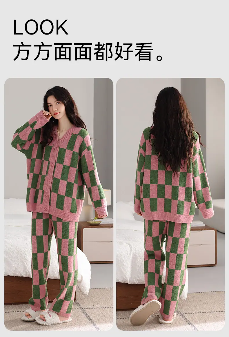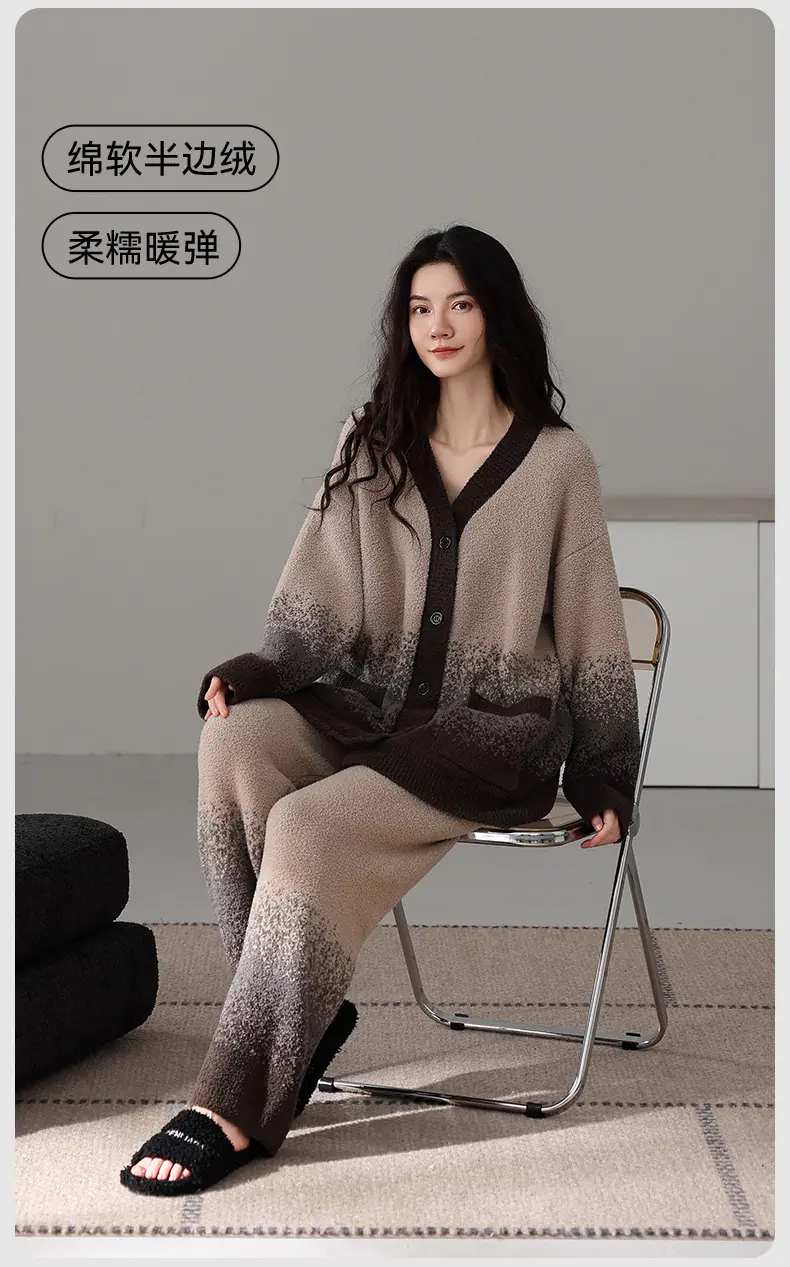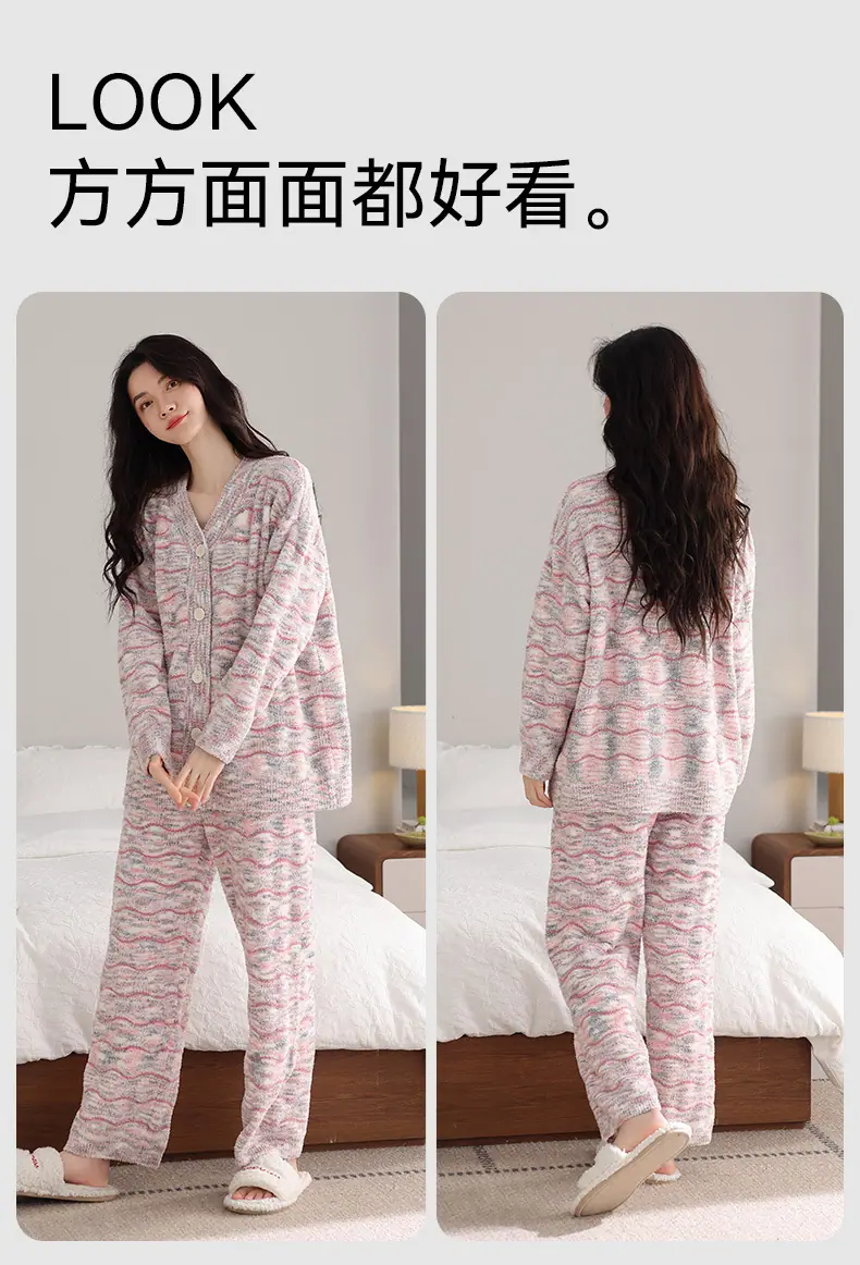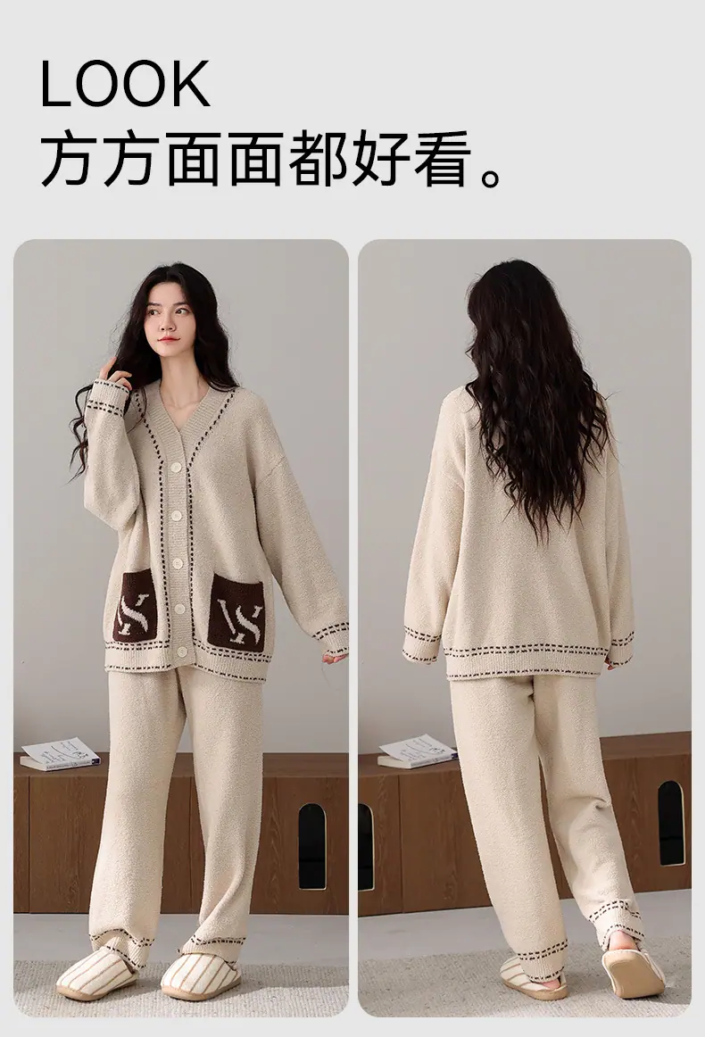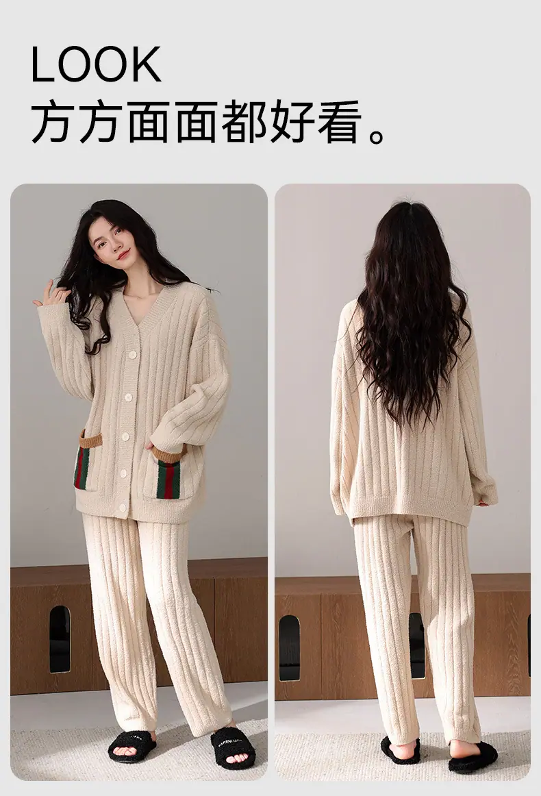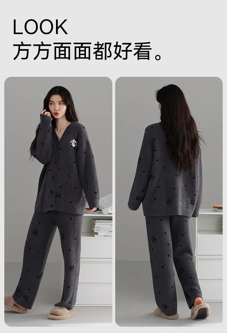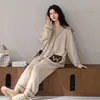 Pijamas de Mujer Otoño e Invierno Nuevo Cálido Espesado Terciopelo de un Lado Simple para Casa Conjunto Suave para Casa de Mujer