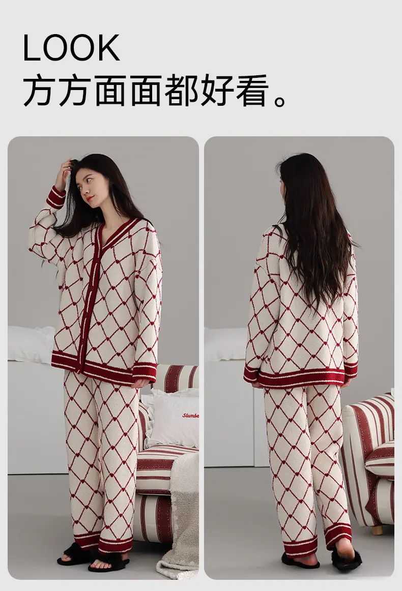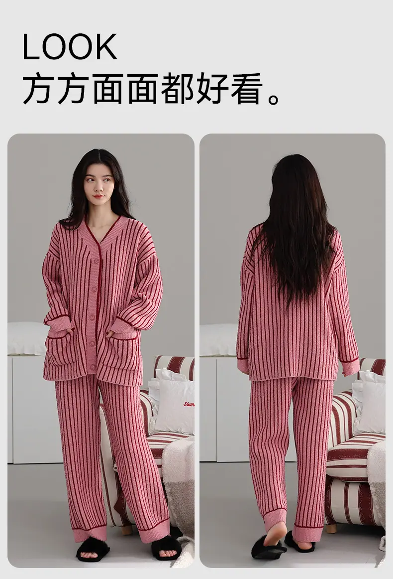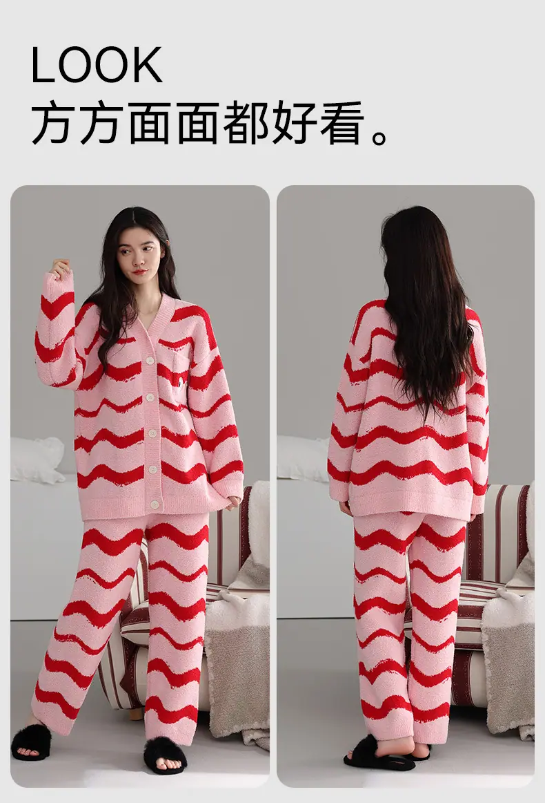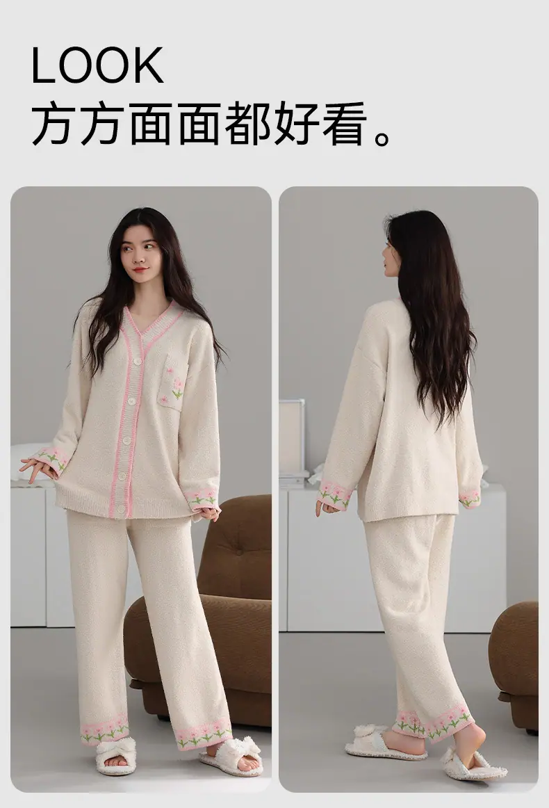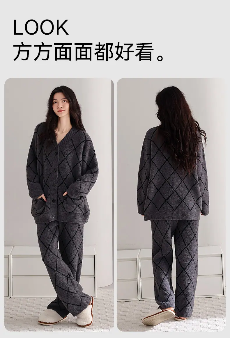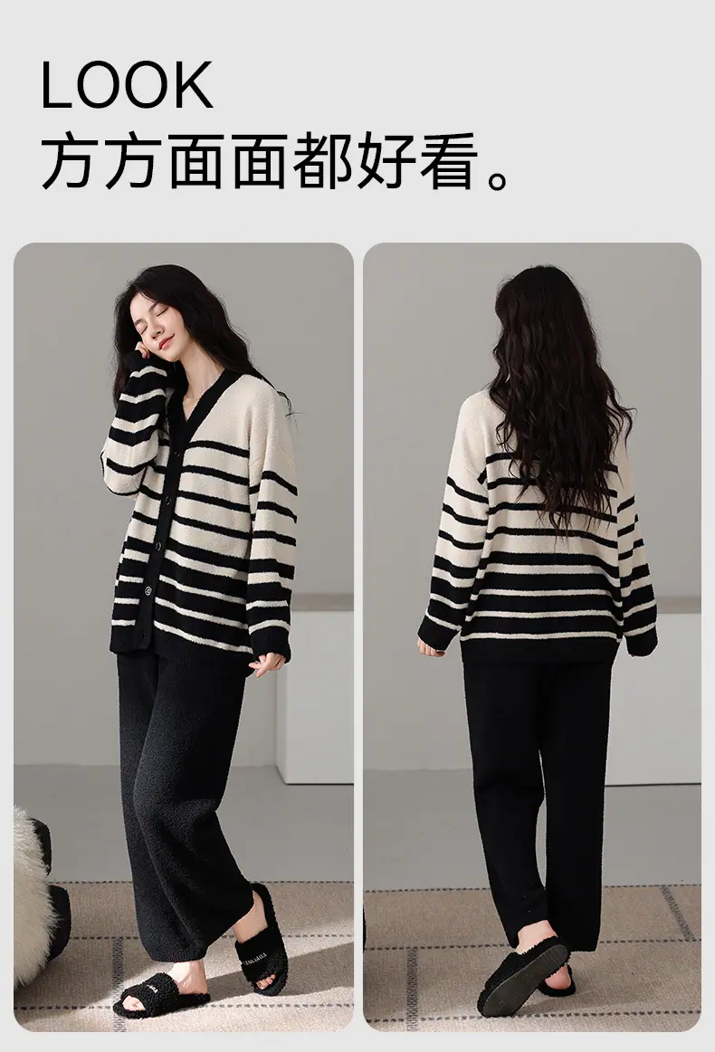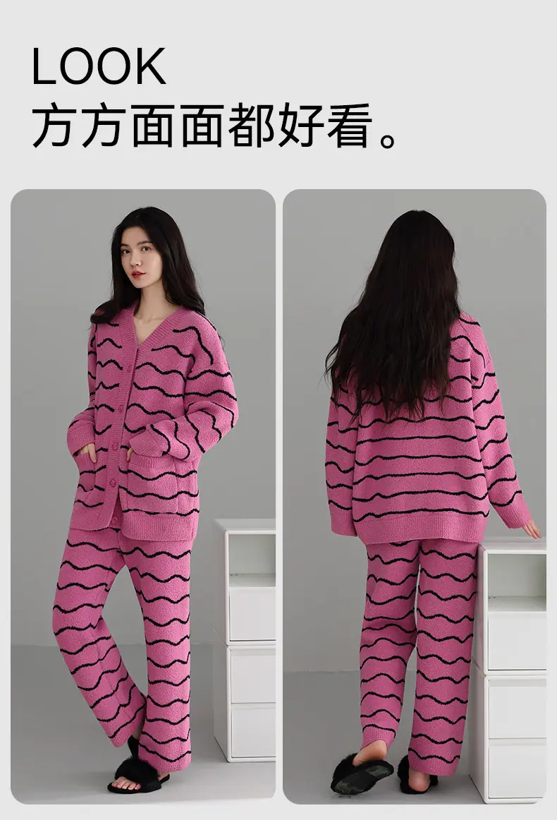 Pijamas de Mujer Otoño e Invierno Nuevo Cálido Espesado Terciopelo de un Lado Simple para Casa Conjunto Suave para Casa de Mujer