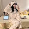 Pijama para Mujer Otoño e Invierno Nuevo Traje Estampado de Terciopelo Doble Cara Estilo Coreano Holgado, Dulce y Lindo Dibujos Animados Casual Ropa para el Hogar