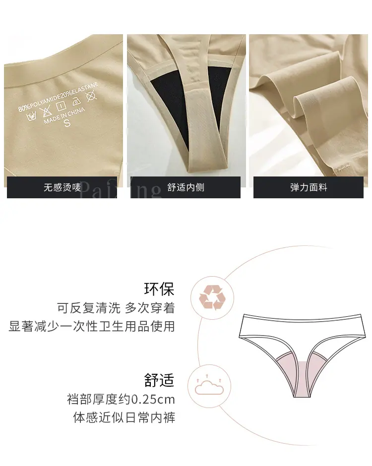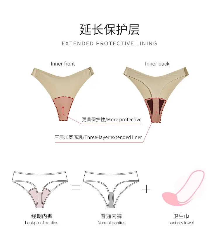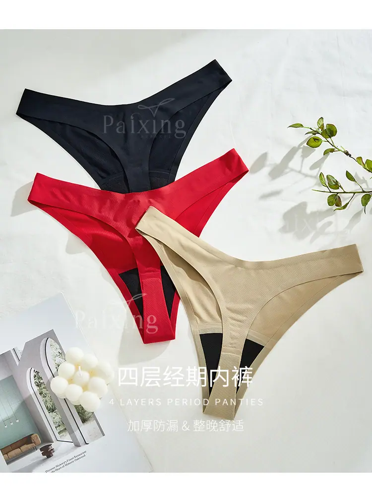 Ropa interior menstrual para mujer de cuatro capas a prueba de fugas para la noche, sin toalla sanitaria, de cintura baja y talla grande