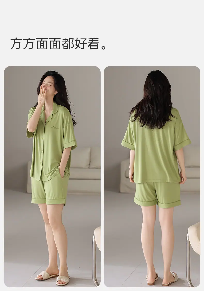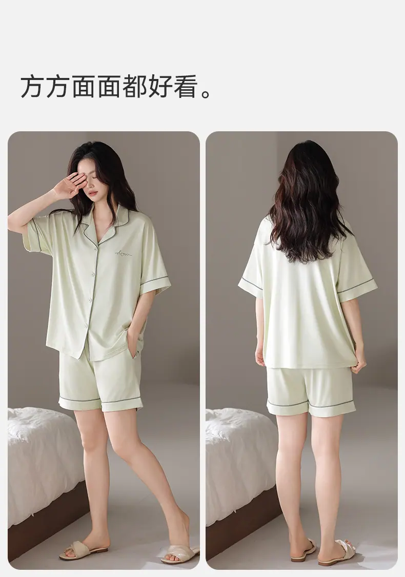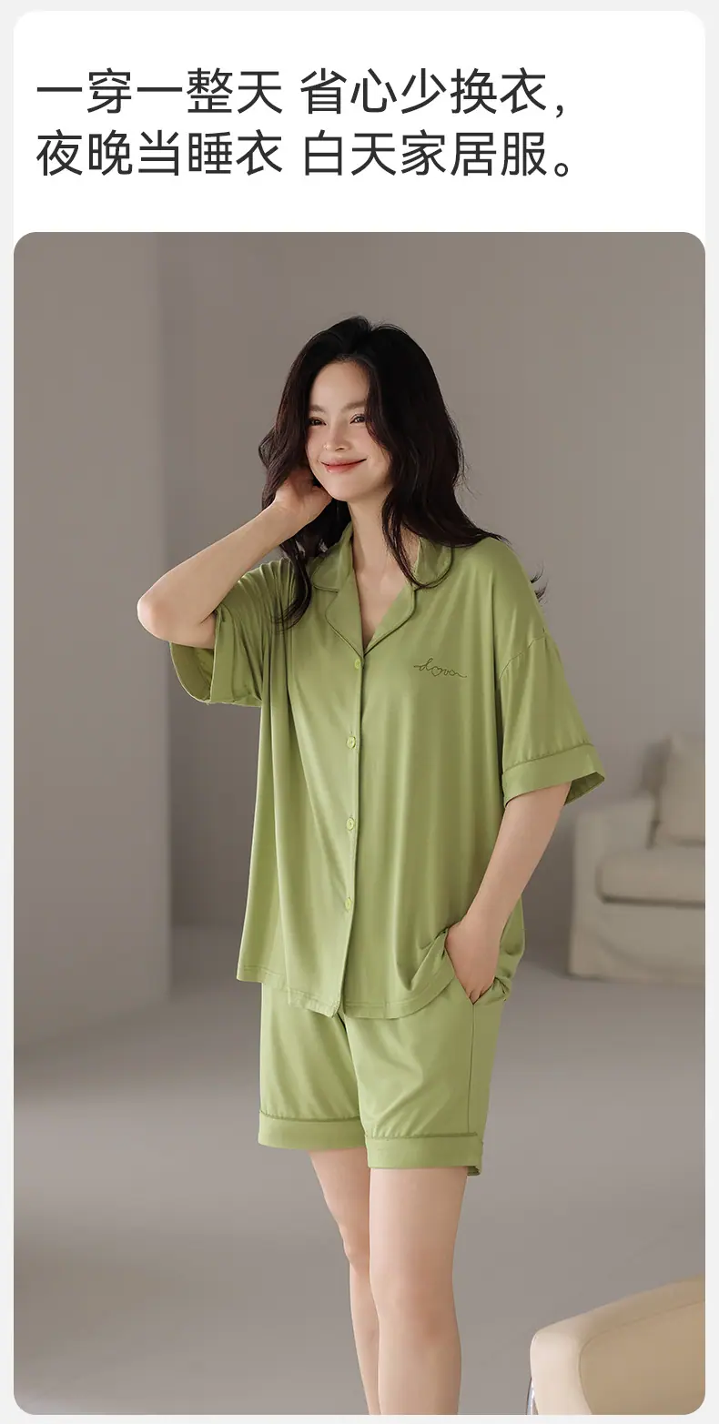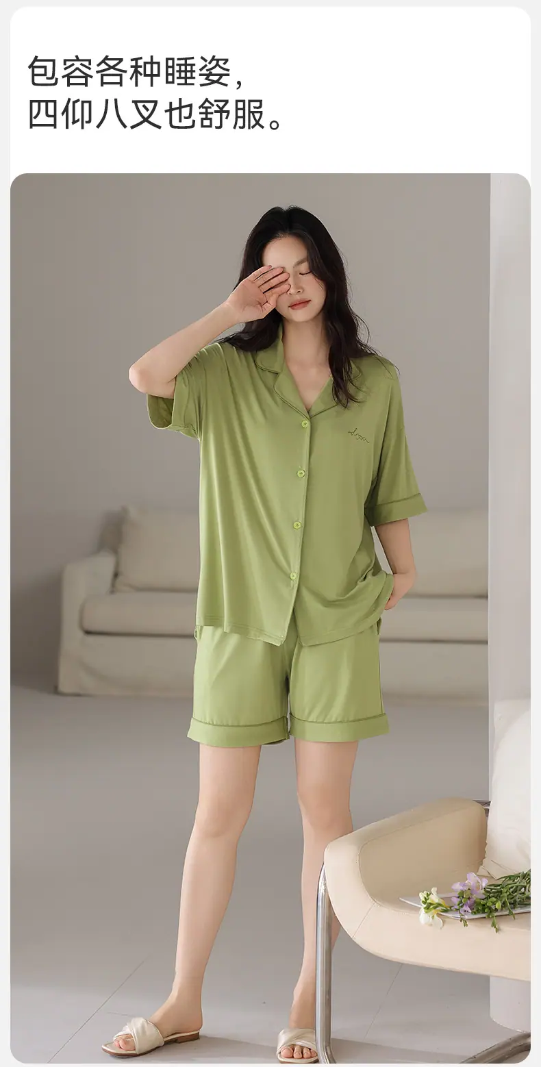 Pijamas Verano para Mujer 2025 Nuevo Modal Delgado para Mujer Manga Corta Shorts Verano Ropa de Casa para Mujer traje