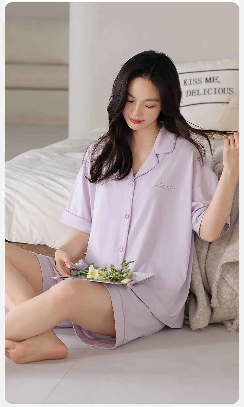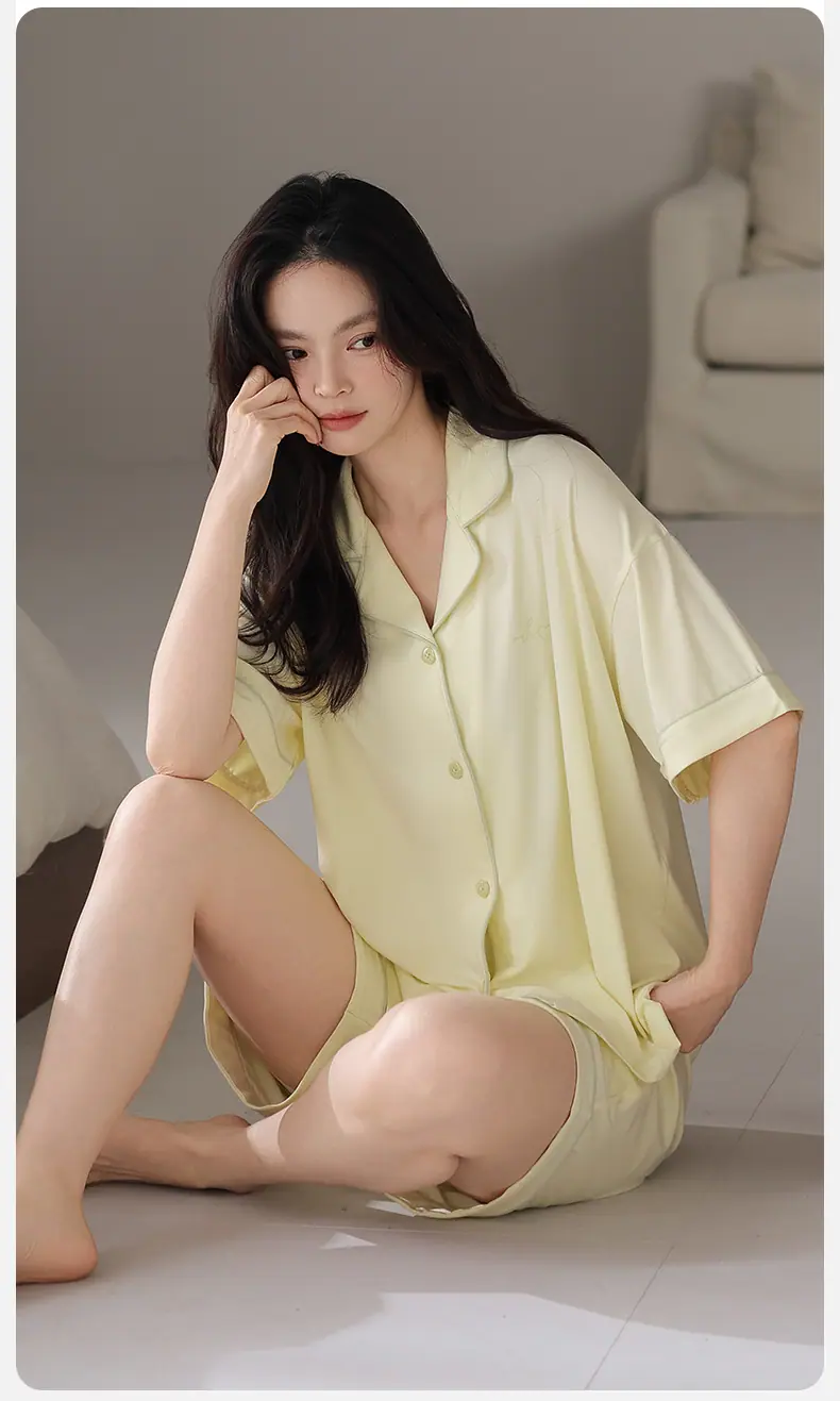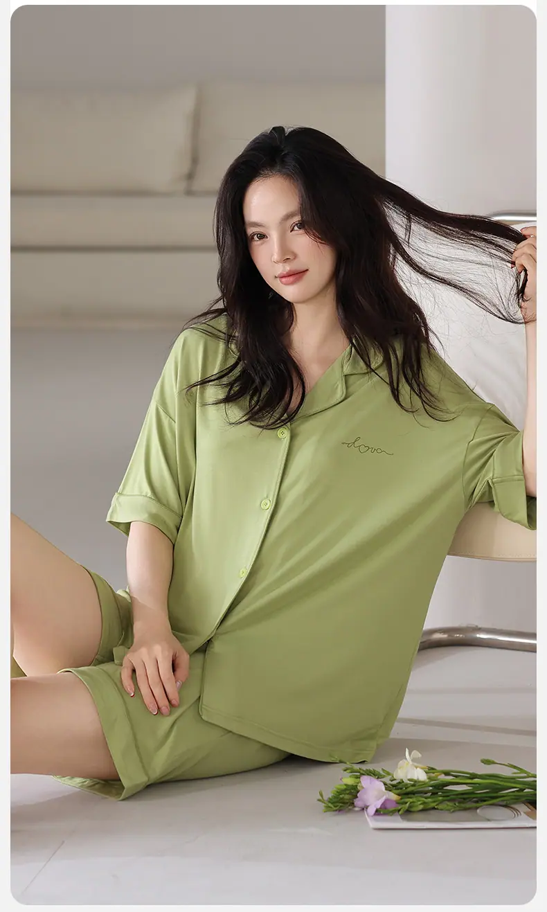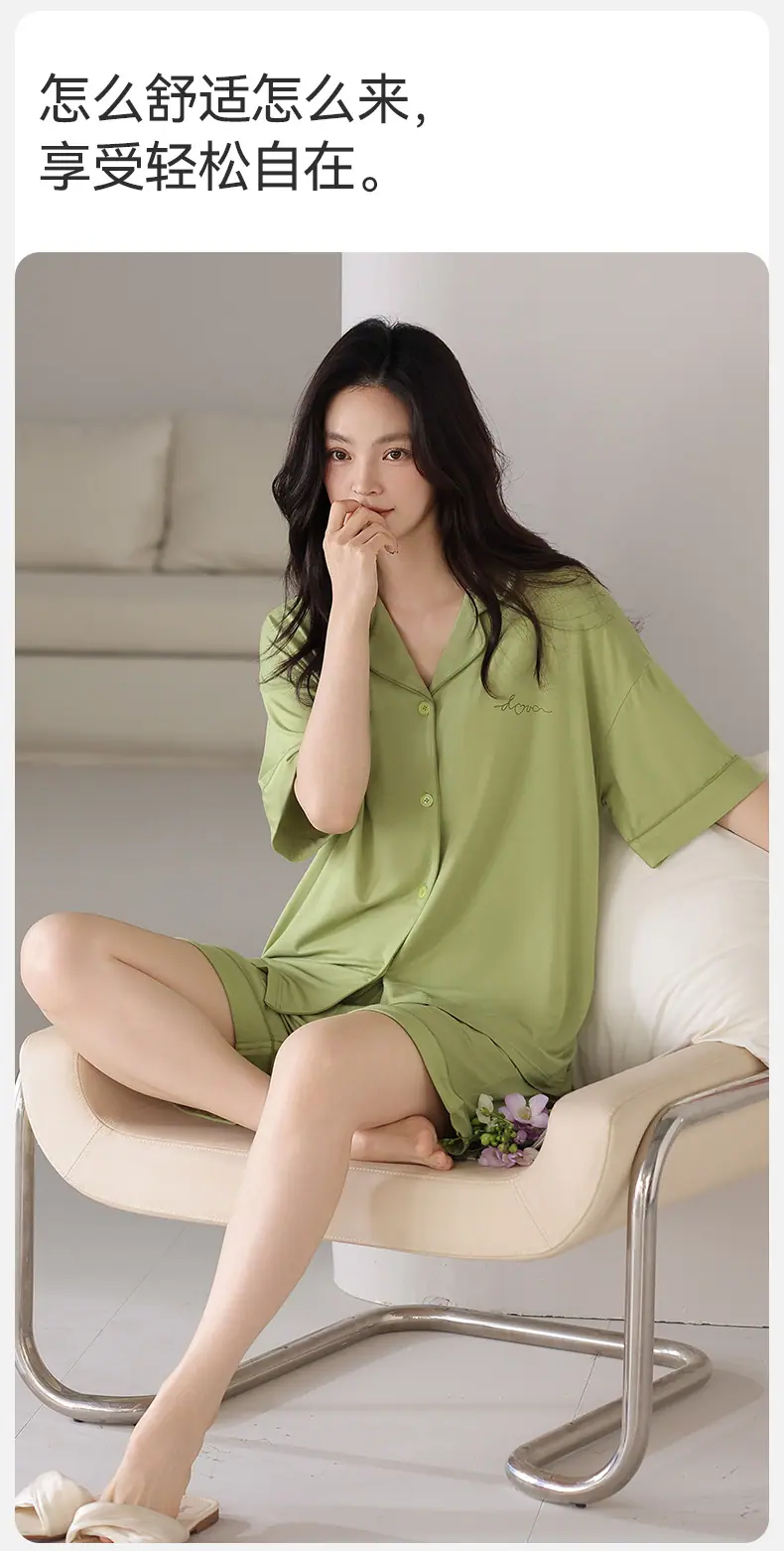 Pijamas Verano para Mujer 2025 Nuevo Modal Delgado para Mujer Manga Corta Shorts Verano Ropa de Casa para Mujer traje