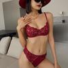 Ropa Interior Sexy de Encaje Estilo Francés Rojo Benmingnian Sujetador Conjunto de Tres Piezas Pecho Grande Pecho Pequeño Sujetador Anti-Caída