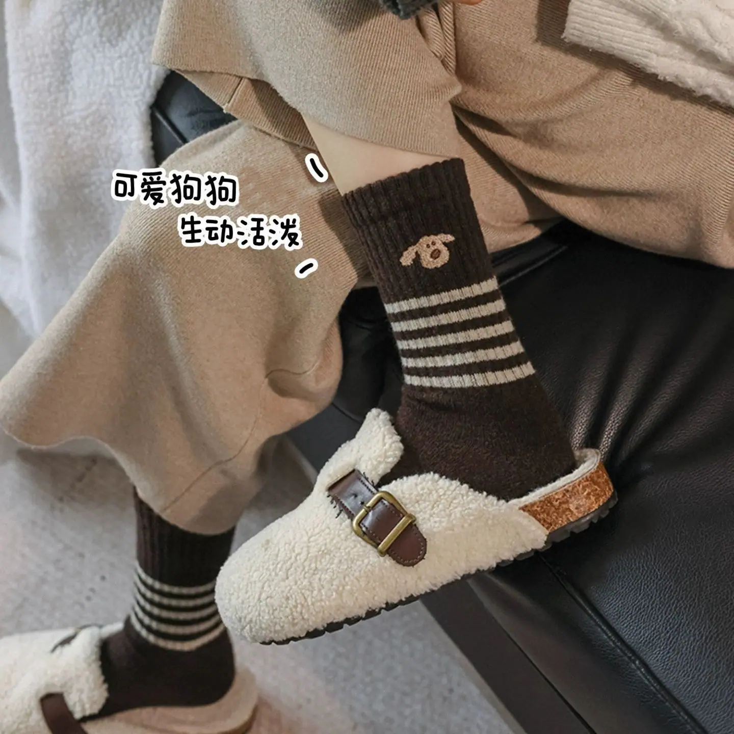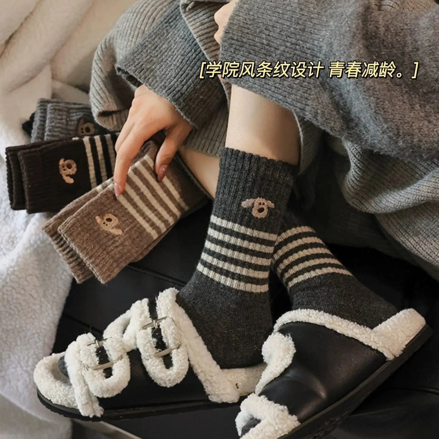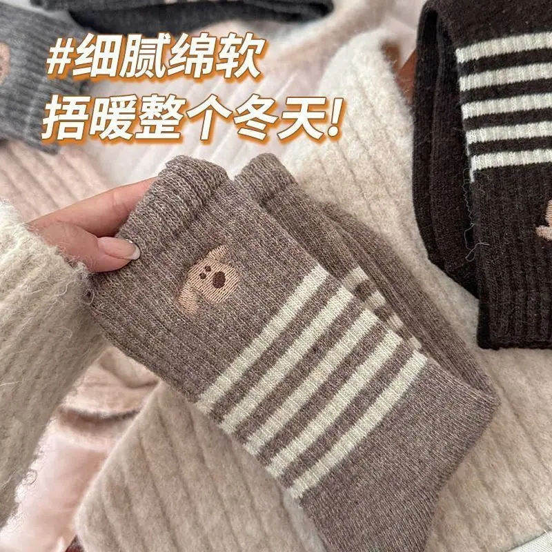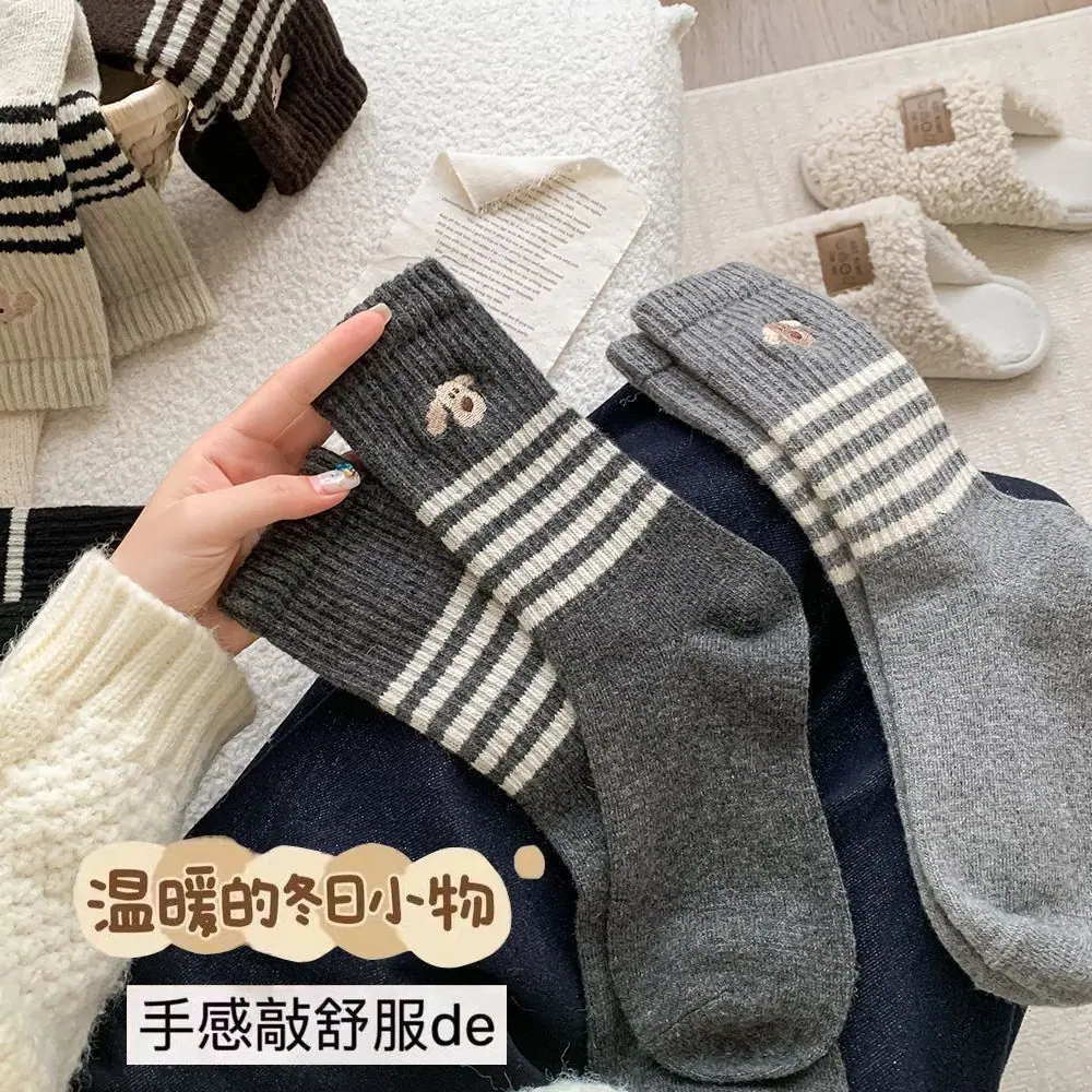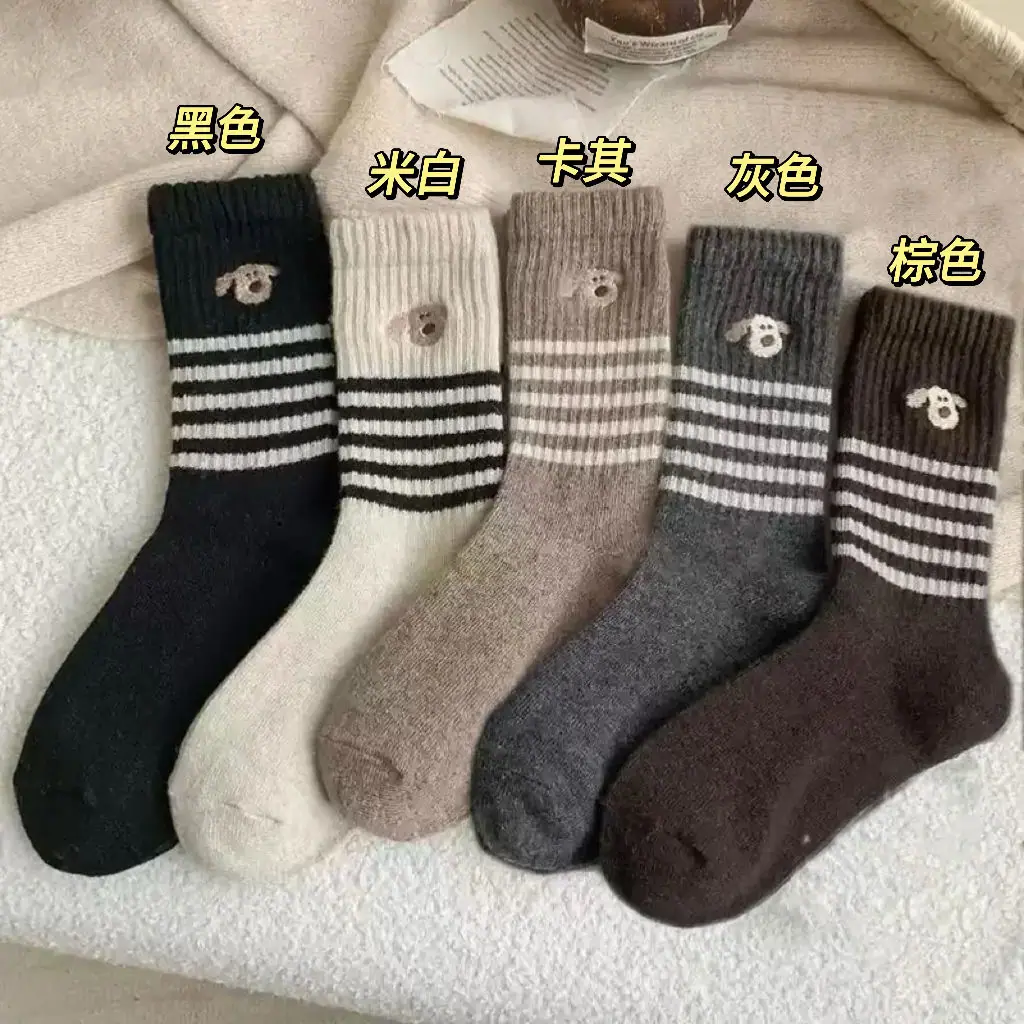 Calcetines gruesos de media caña ins de otoño e invierno cálidos de estilo retro japonés calcetines largos de invierno calcetines de cachorro a rayas para mujer