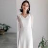Vestido de novia ligero estilo francés, súper hada, sencillo, de satén blanco, con escote en V y manga larga, para fiesta diaria.