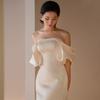 Vestido de Novia Ligero Estilo Francés 2026 Nuevo Vintage Blanco Satén Hombros Descubiertos Sirena Vestido Fabricante Suministro al por Mayor
