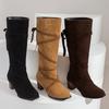 Botas de mujer de comercio exterior europeas y americanas 2022 invierno Nuevo Punta redonda tacón grueso botas altas botas con correa cruzada X2301019