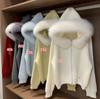 Invierno Nuevo Transfronterizo Cárdigan de Punto Grueso con Capucha y Cuello de Piel Grande para Mujer, Holgado, a la Moda, con Temperamento, Suave, Ceroso, Casual