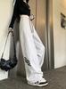 Pantalones deportivos de rayas blancas y grises para mujer, primavera y otoño 2024, nuevos pantalones de pierna ancha y recta, pantalones deportivos casuales pequeños y sueltos.