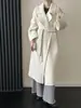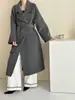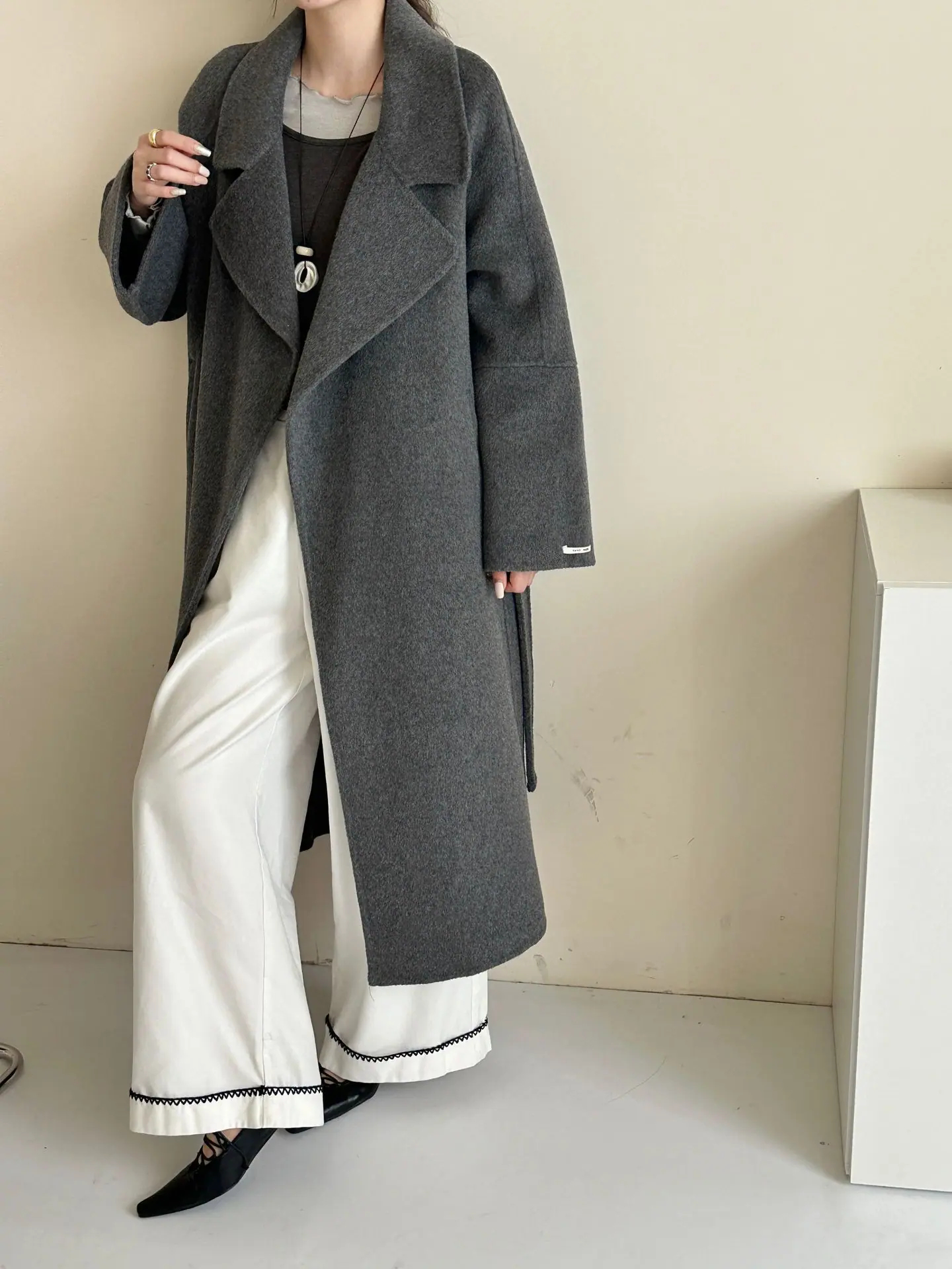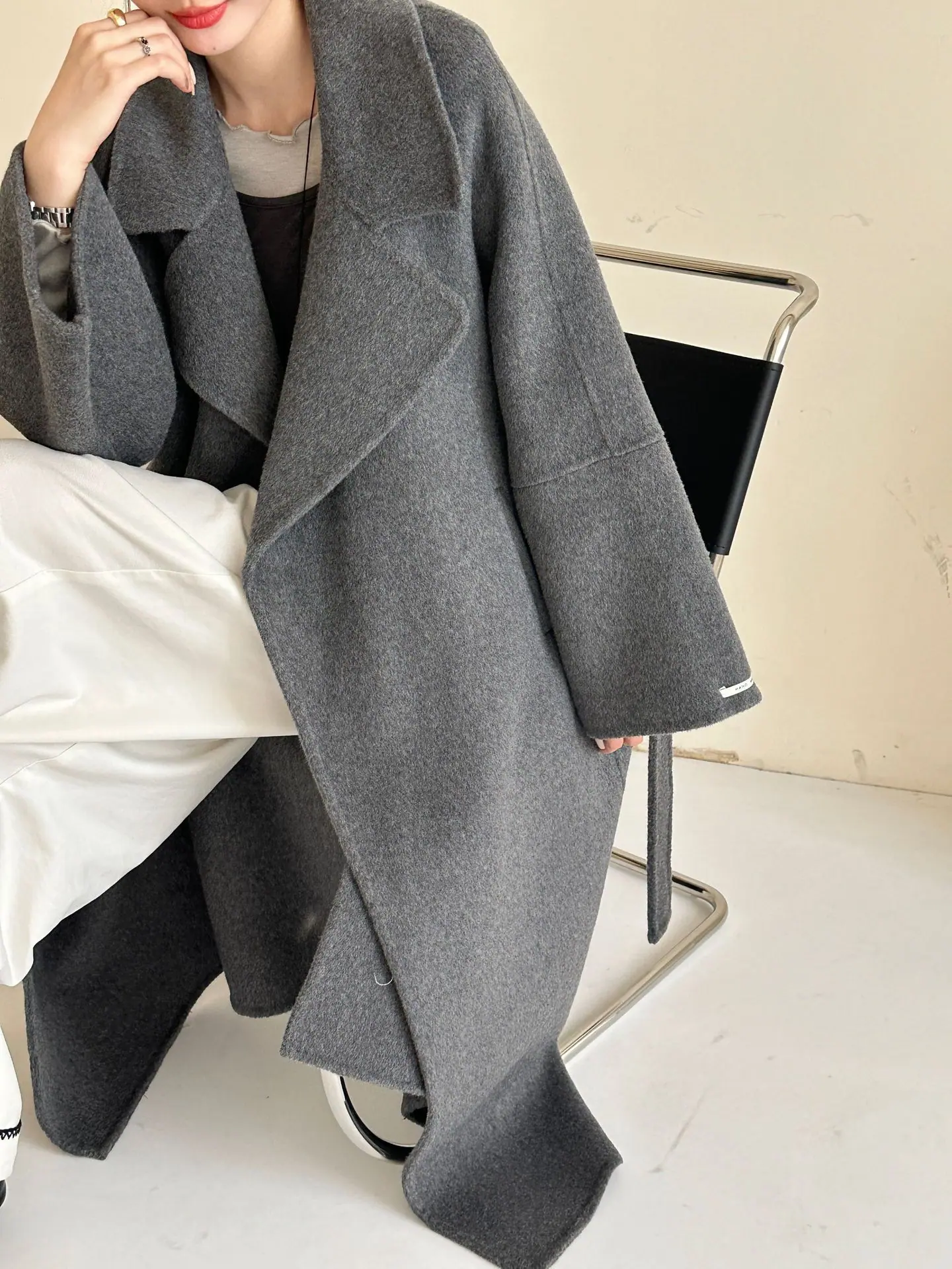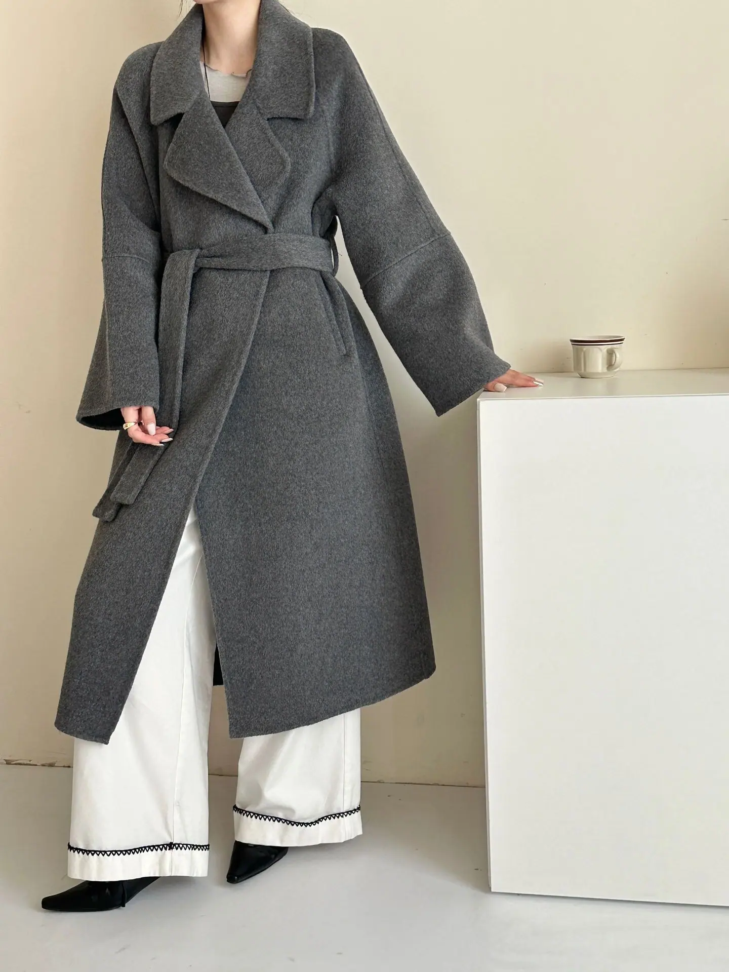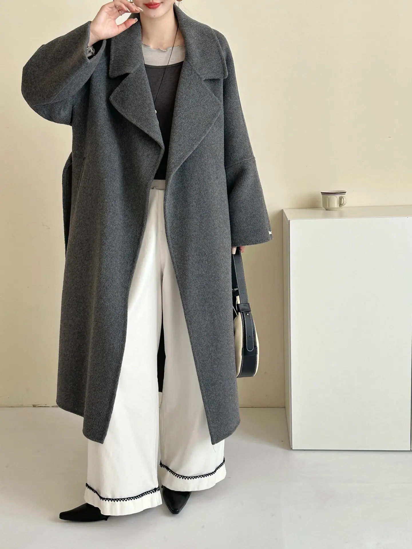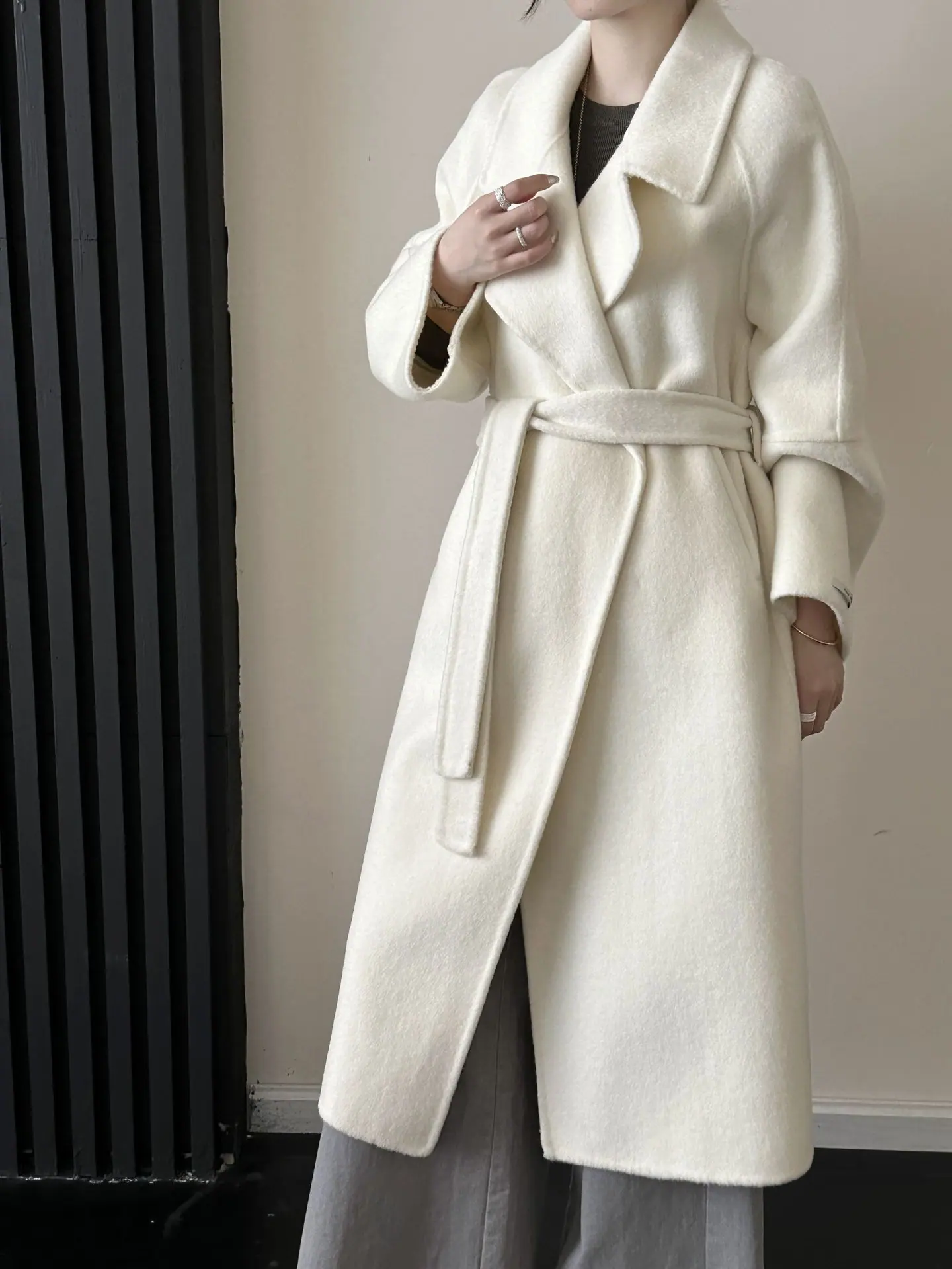 Abrigo de Lana de Doble Faz para Mujer con Cuello de Traje, Doble Botonadura, Manga Raglán, Manga Larga, Largo Extendido, Corte Tridimensional