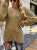 Suéter casual de punto de color sólido nuevo de otoño e invierno transfronterizo europeo y americano para mujer, jersey de rayas con cuello en V