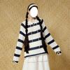 Suéter de Punto con Rayas en Contraste, Cuello en V, Cordones, Manga Larga, Estilo Perezoso, Holgado y Versátil para Hombres y Mujeres