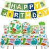 Fiesta de Cumpleaños de Dinosaurios de Dibujos Animados Fiesta de Cumpleaños Infantil Vajilla Plato de Papel Taza Servilleta Cuchillo Tenedor Cuchara Globo Decoración de Fiesta