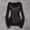 Compra Camiseta de Manga Larga Retro Sexy Caliente Estampada con Diamantes Estilo Callejero Retro Europeo y Americano Y2K para Mujer Top Ajustado al por mayor en Joom.pro