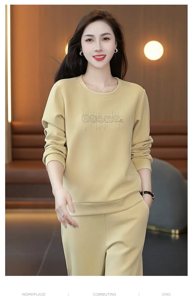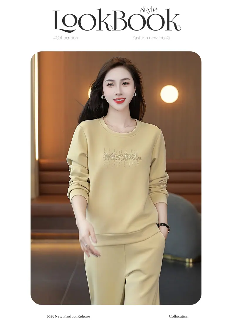 2025 nuevo estilo moda de otoño y primavera para mujer moderno que reduce la edad estilo coreano de alta gama adelgazante casual conjunto de dos piezas