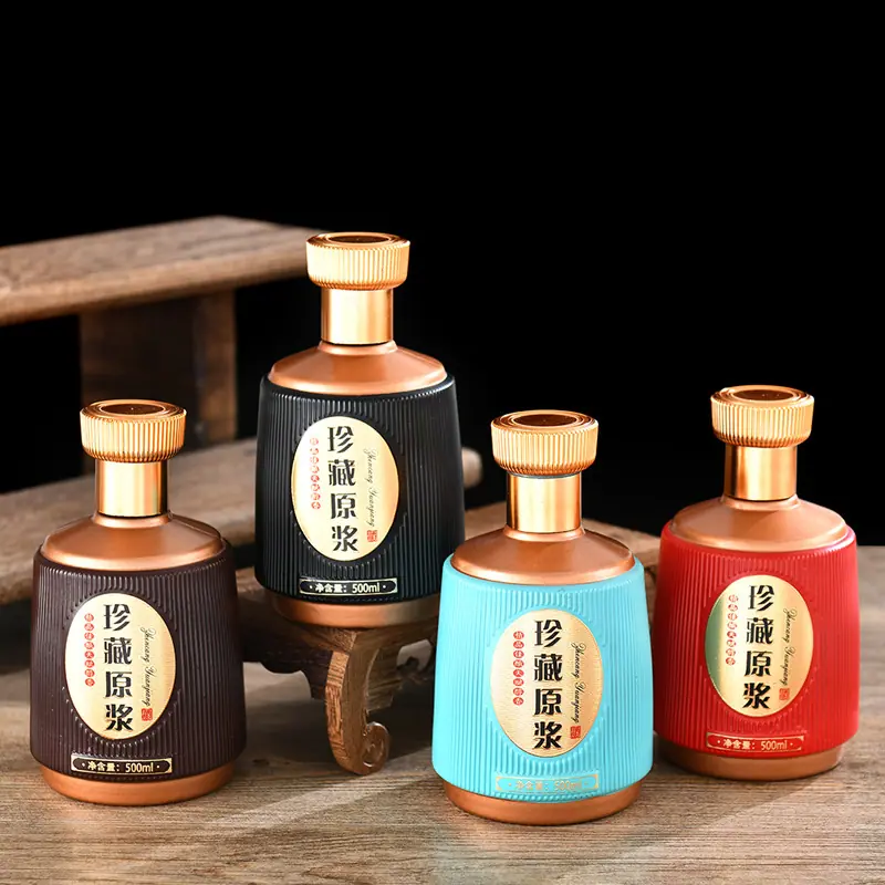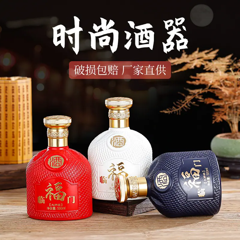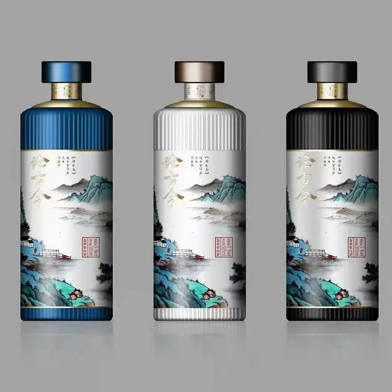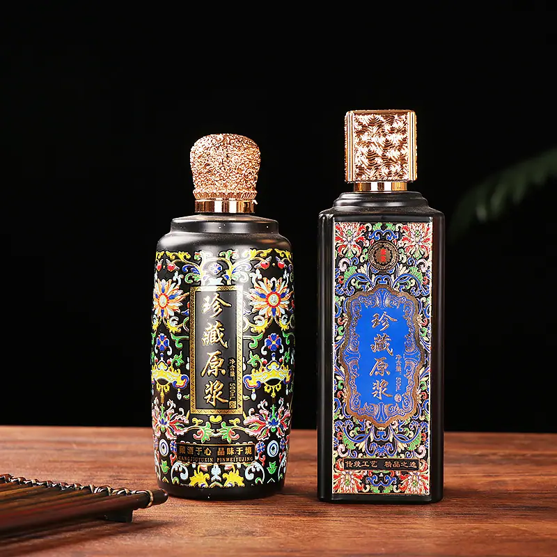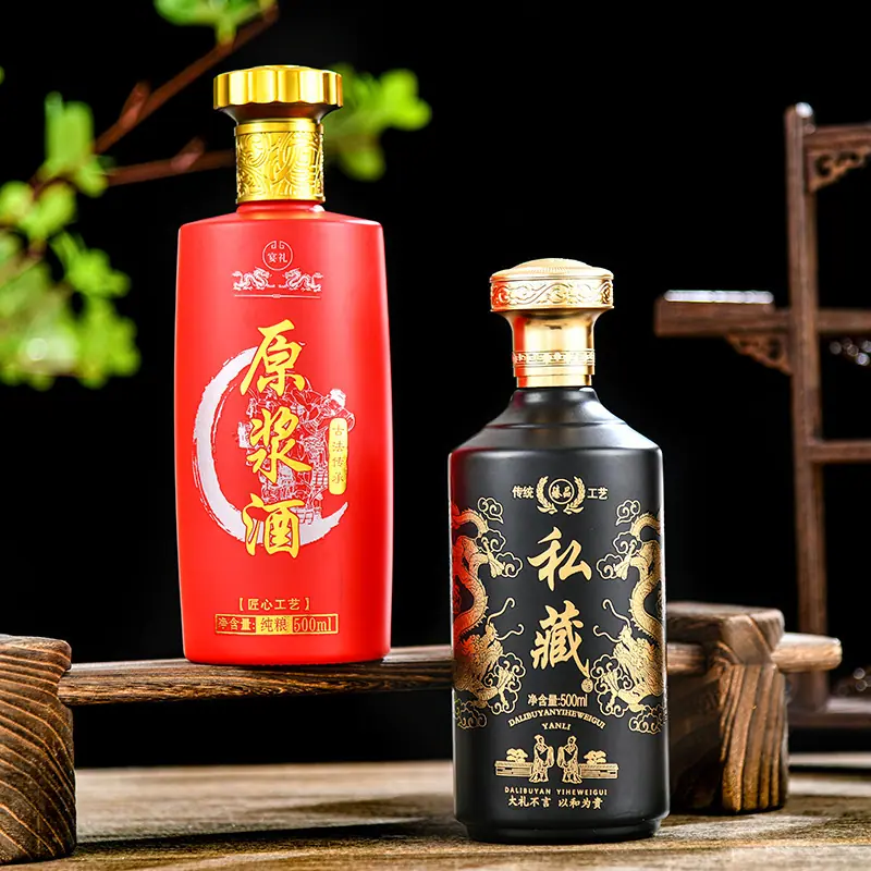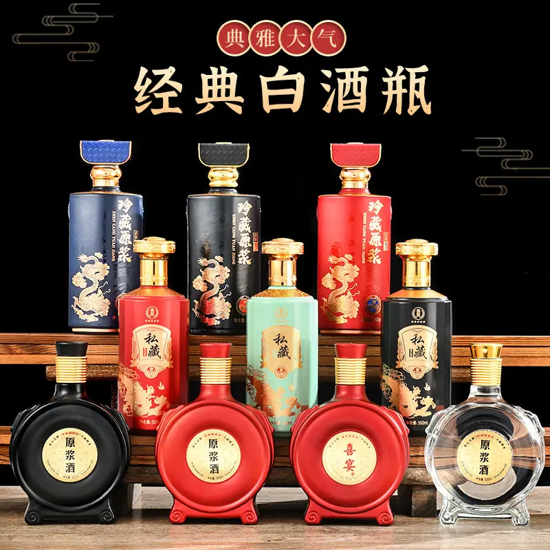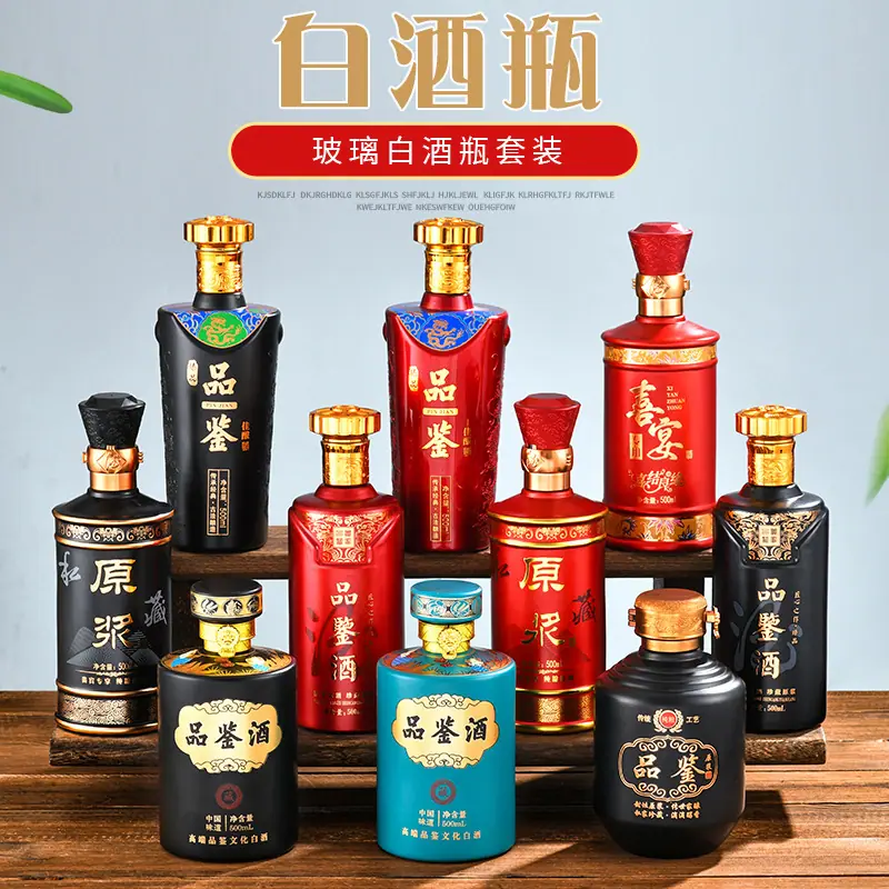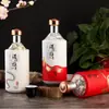 Botella de vino de vidrio botella vacía botella de vino blanco botella de vino sellada de alta gama botella vacía botella de vino de un jin juego completo caja de regalo
