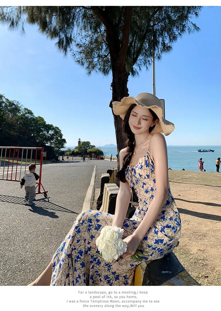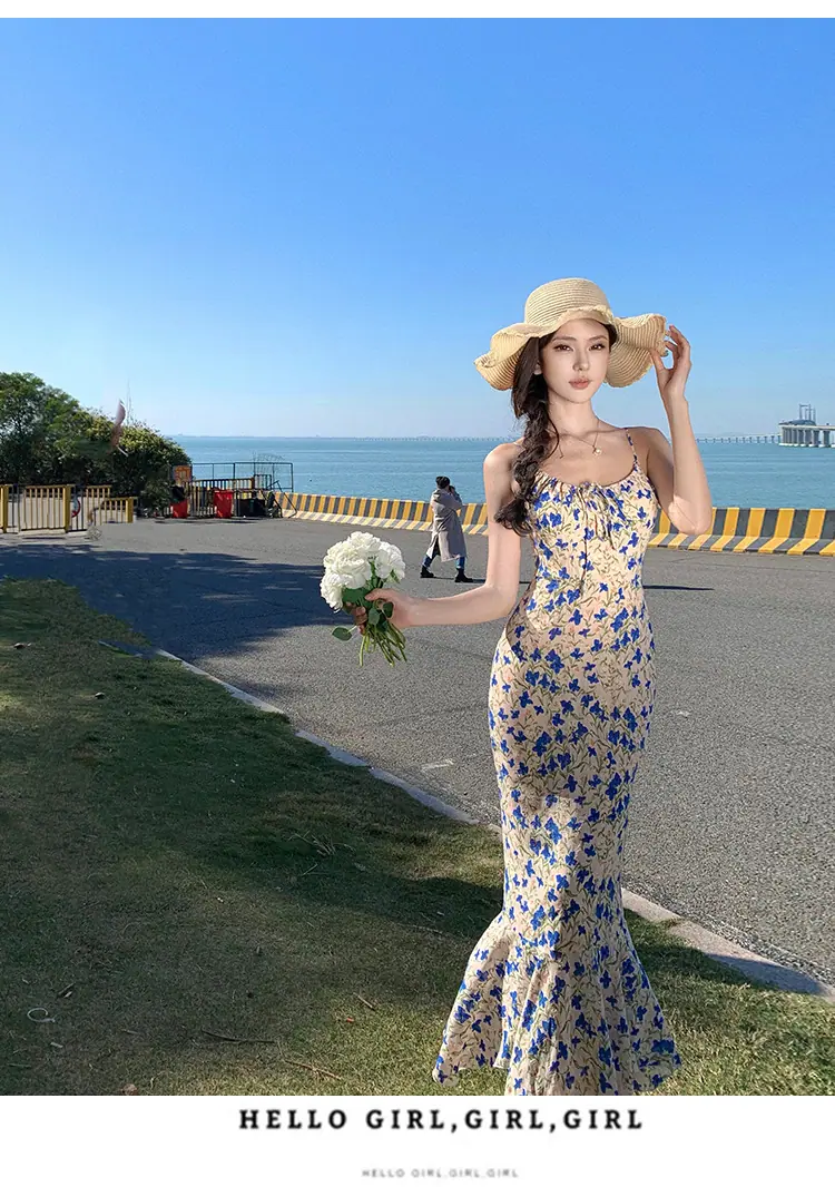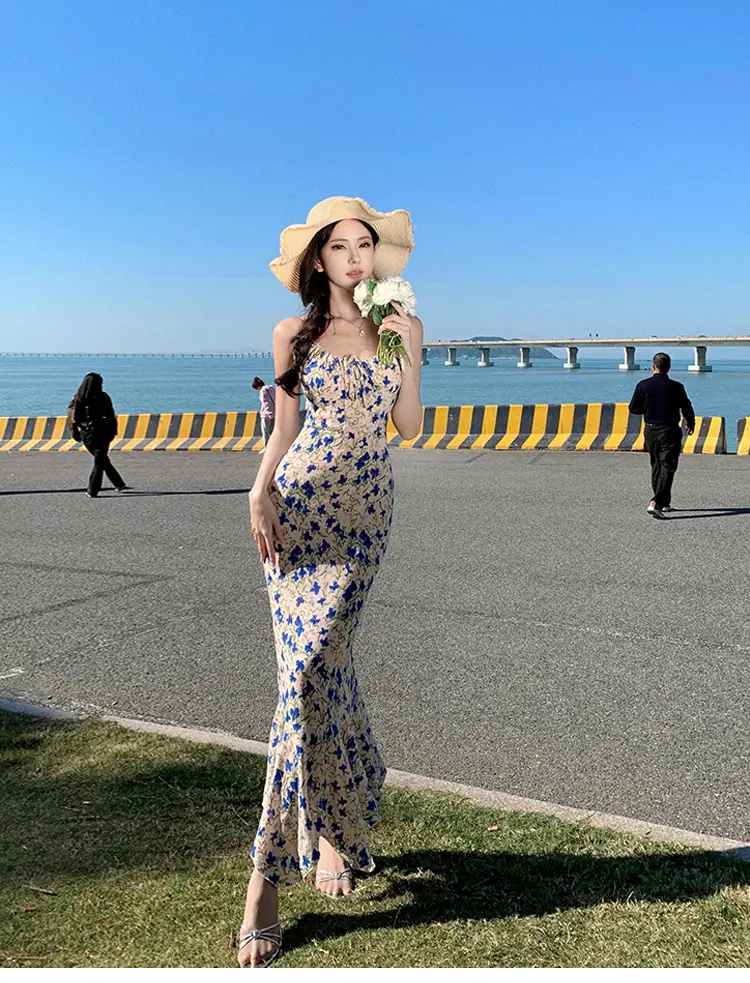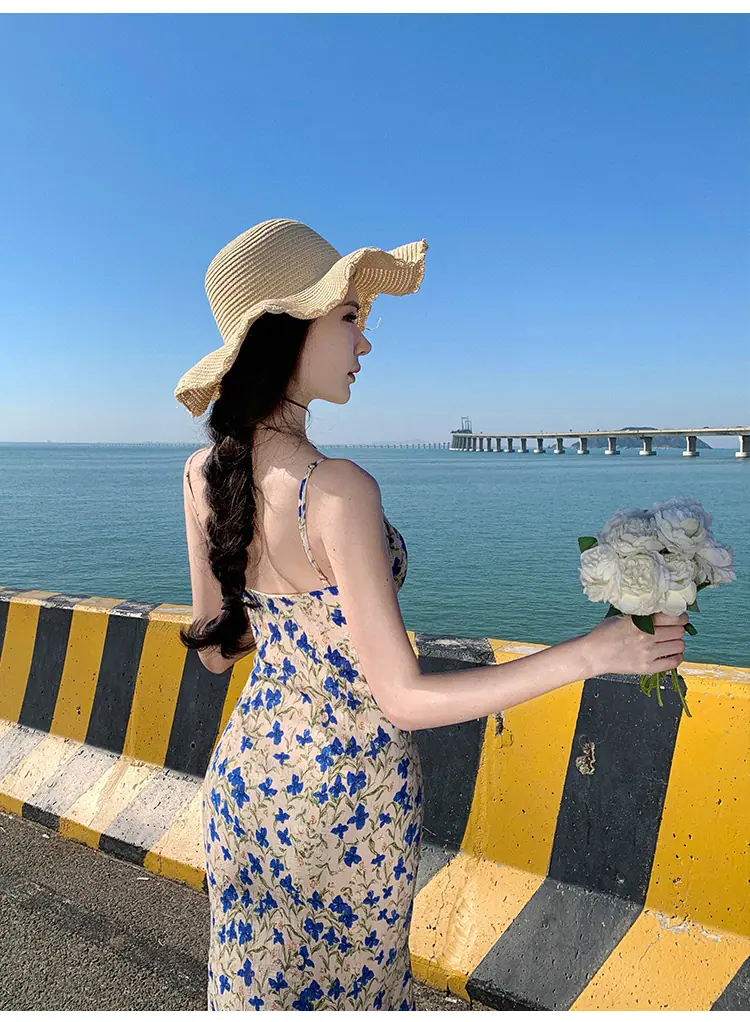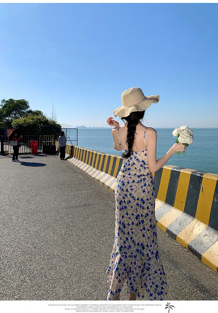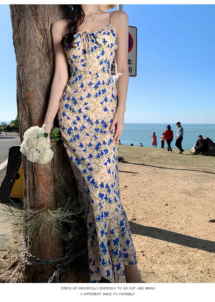 Vestido de mariposa azul estilo festivo francés para mujer, falda lencero floral de verano, falda larga hasta la cintura.