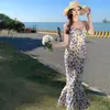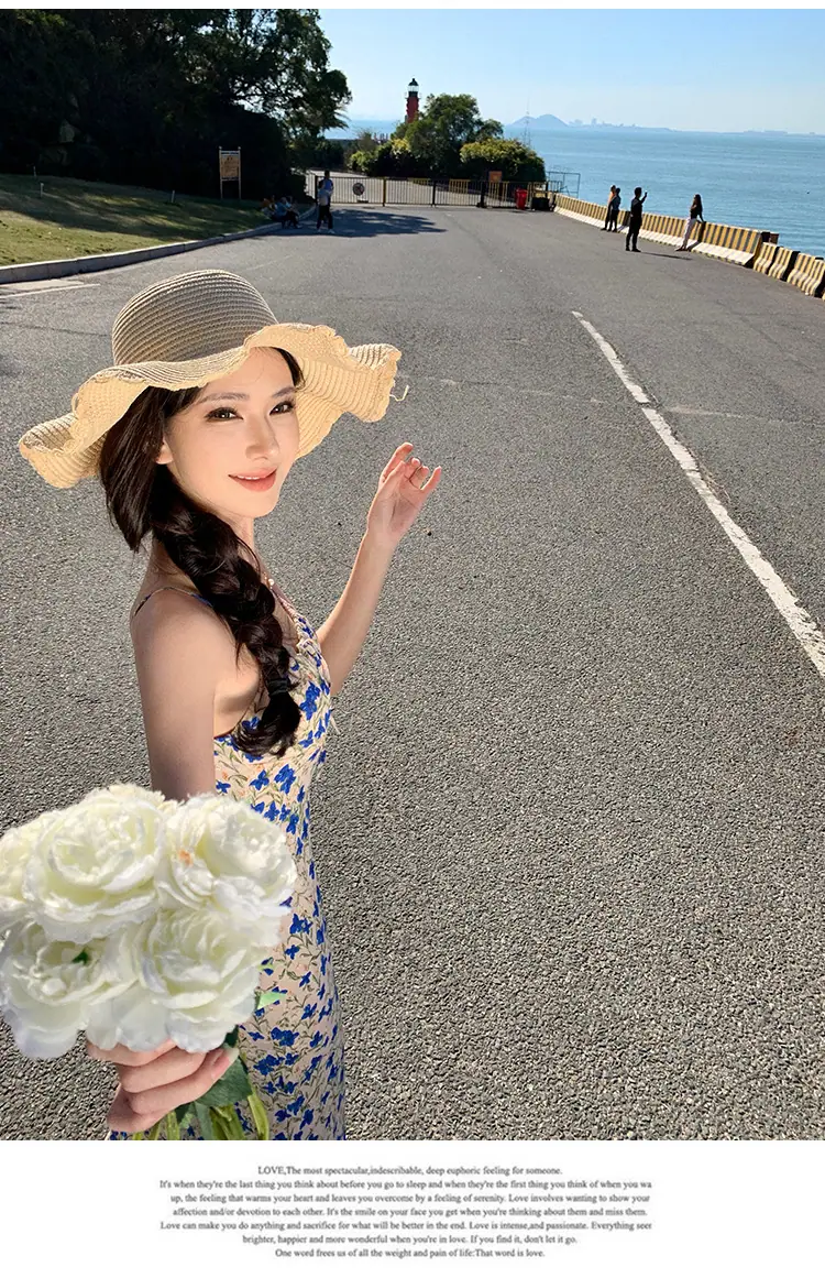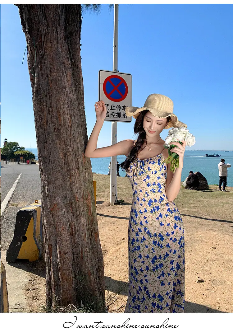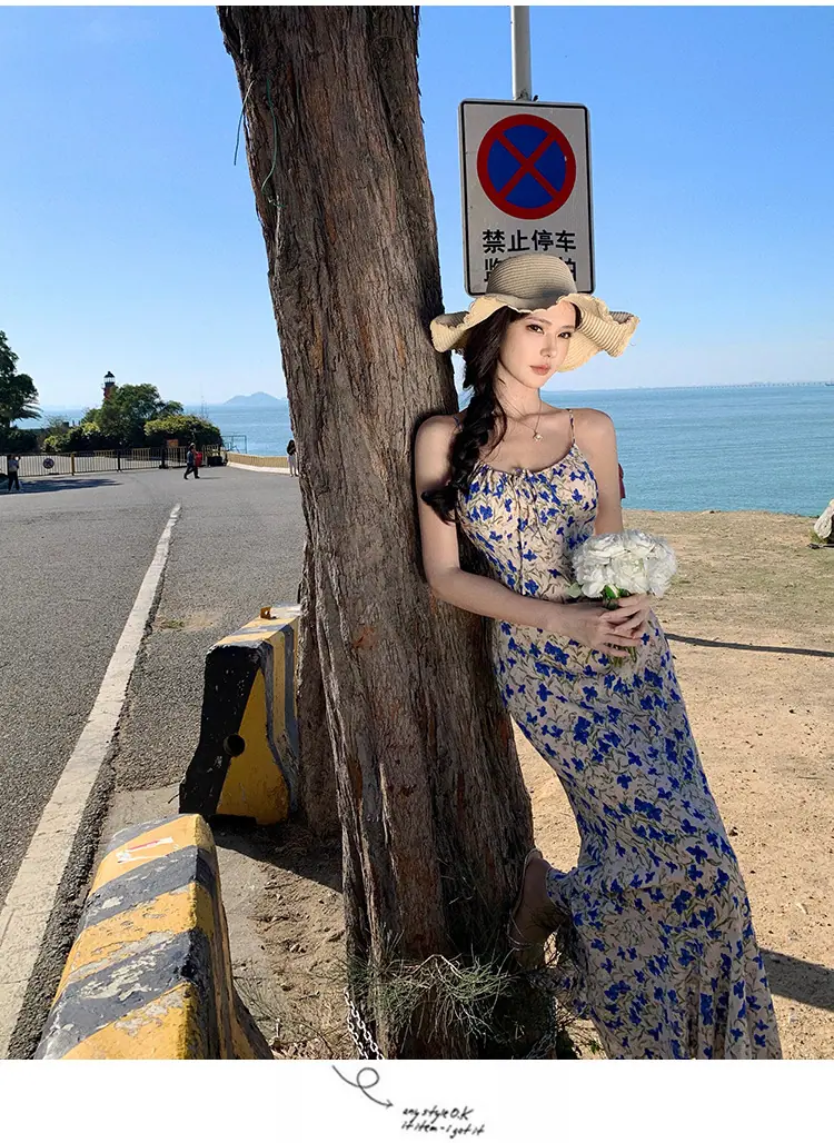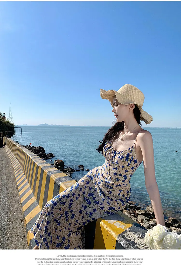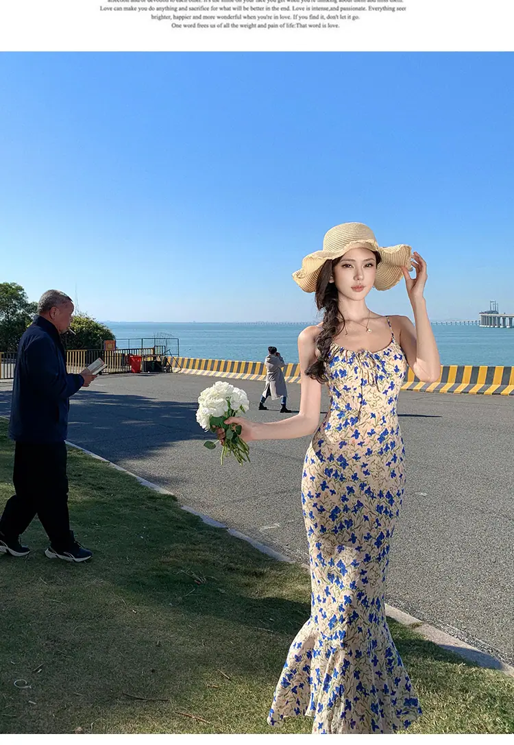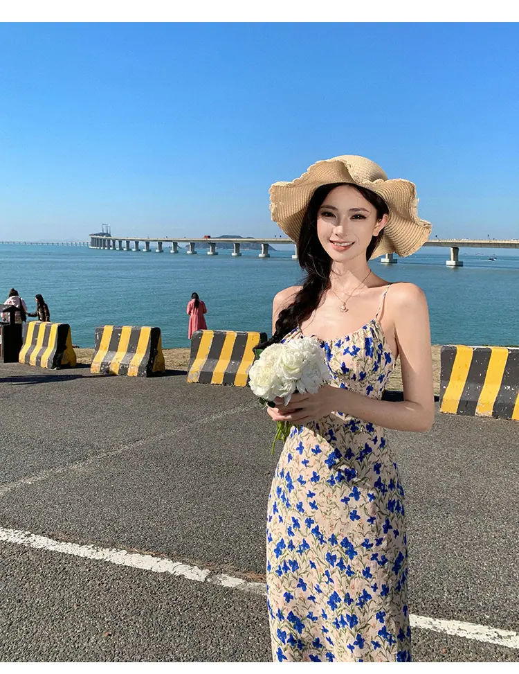 Vestido de mariposa azul estilo festivo francés para mujer, falda lencero floral de verano, falda larga hasta la cintura.