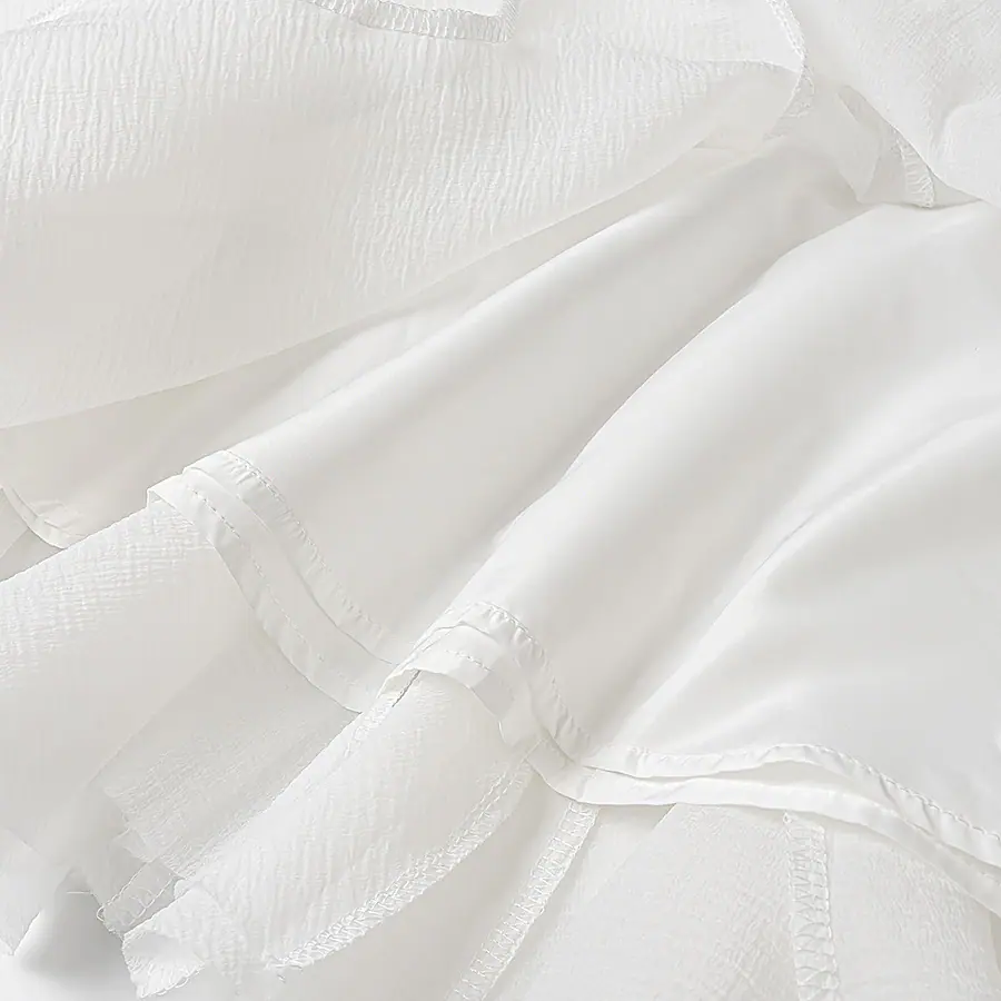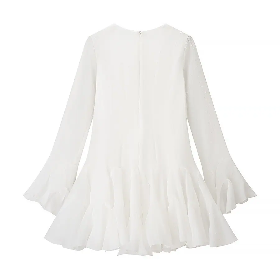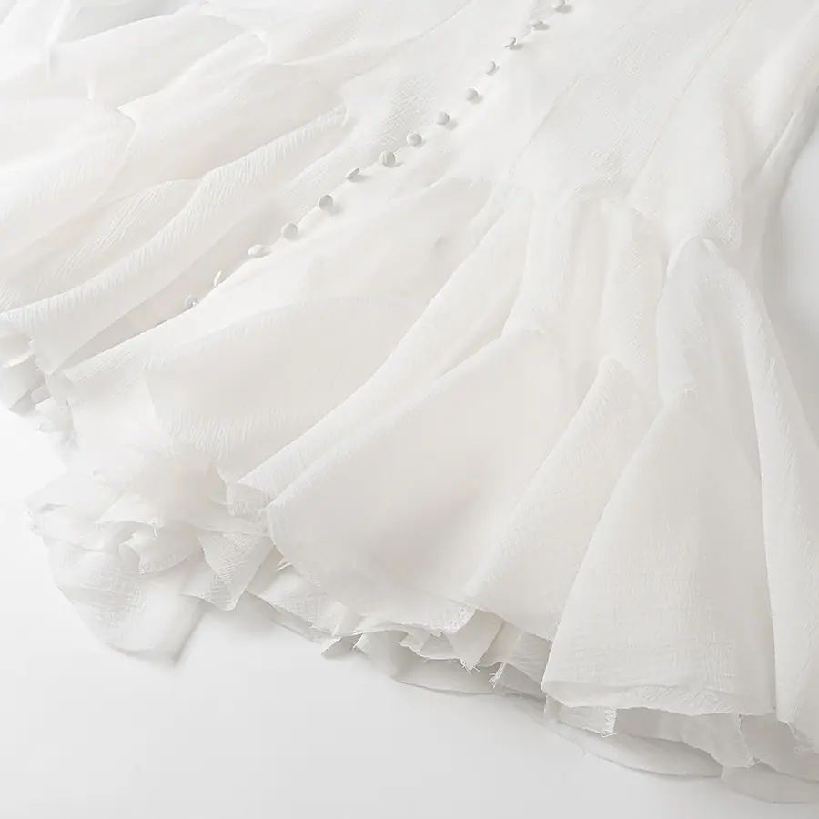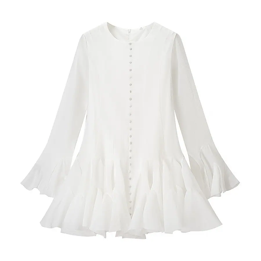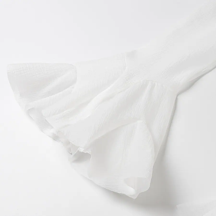 Vestido de Verano para Mujer 2025 Nuevo Diseño Nicho Francés Estilo Suave Manga Larga Cintura Ajustada Blanco