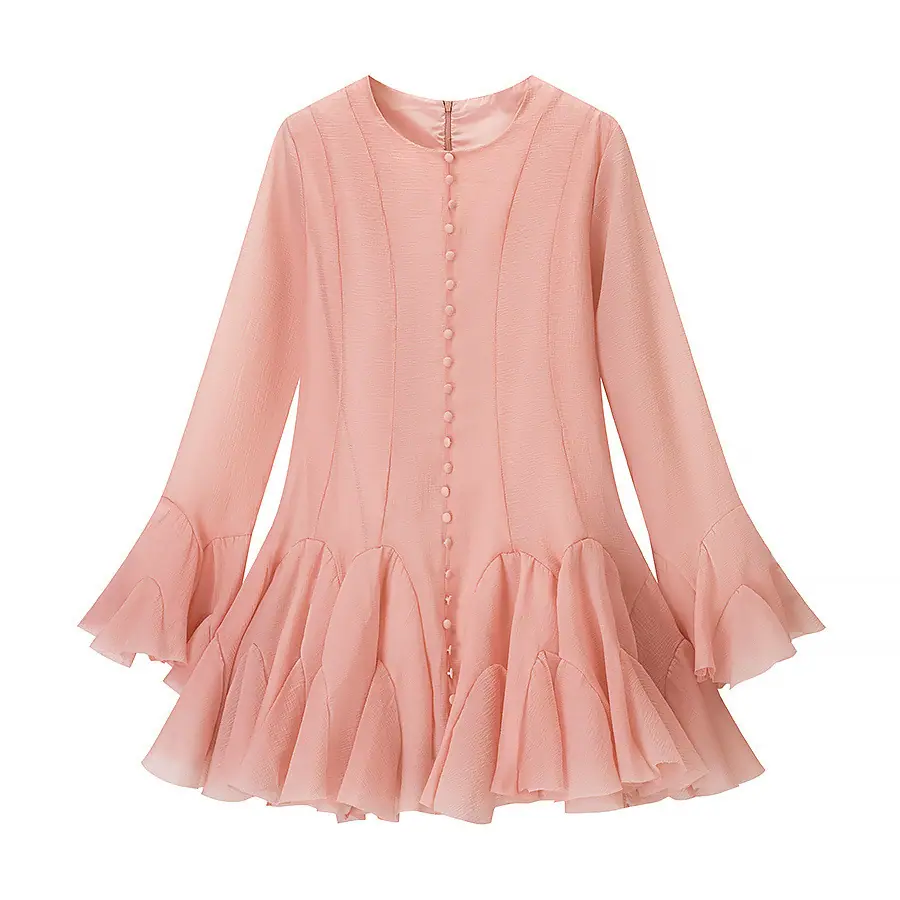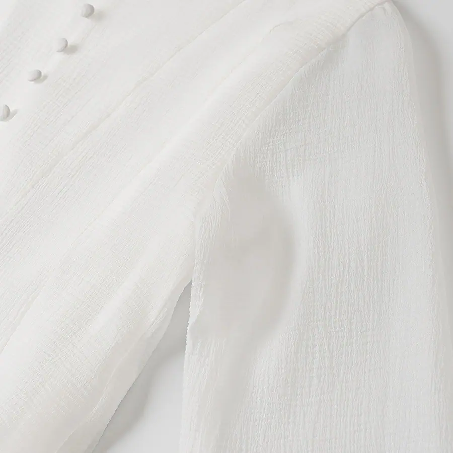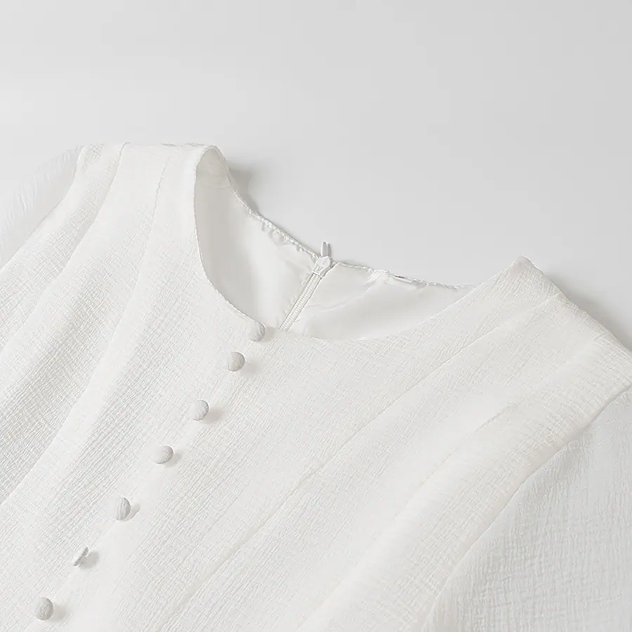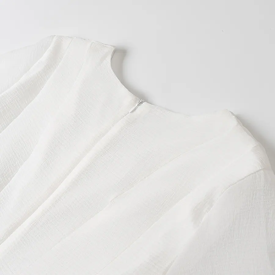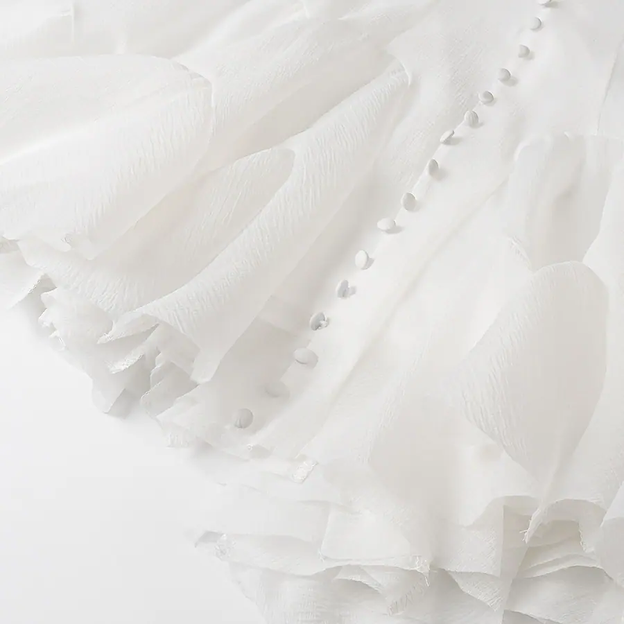 Vestido de Verano para Mujer 2025 Nuevo Diseño Nicho Francés Estilo Suave Manga Larga Cintura Ajustada Blanco
