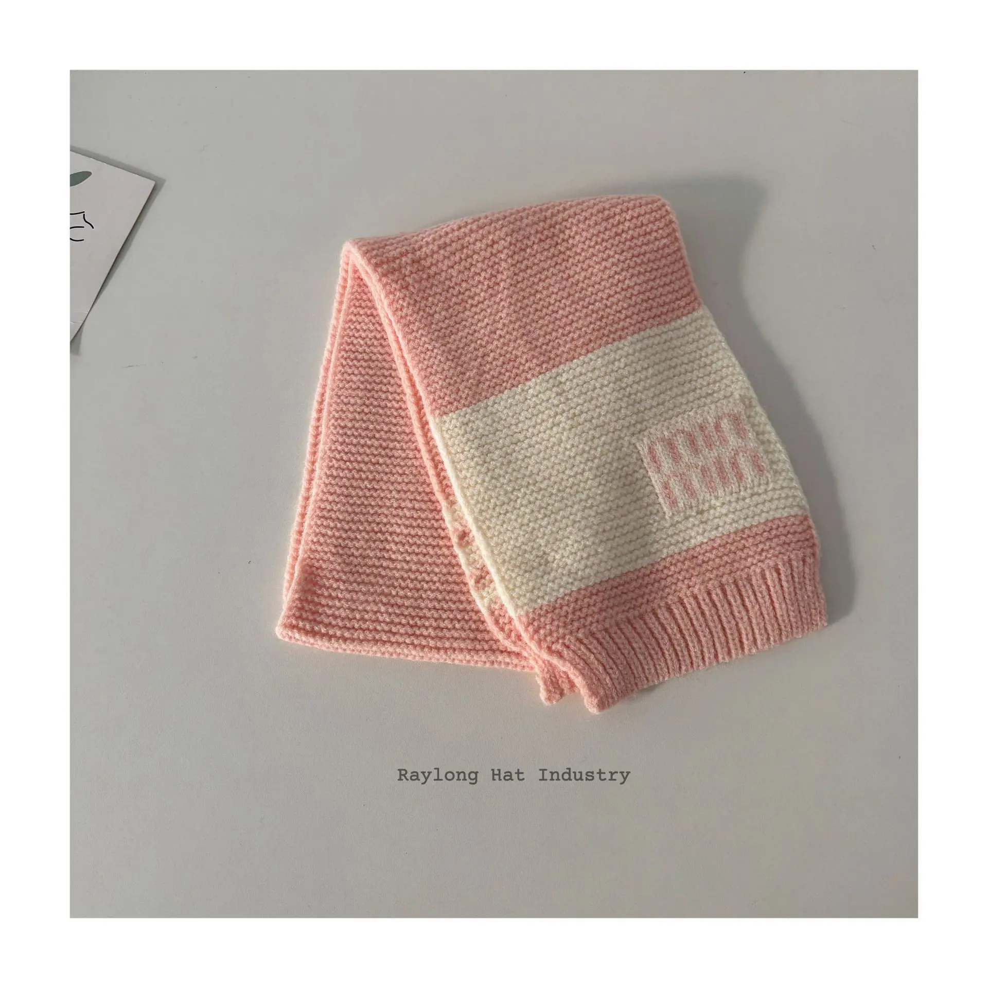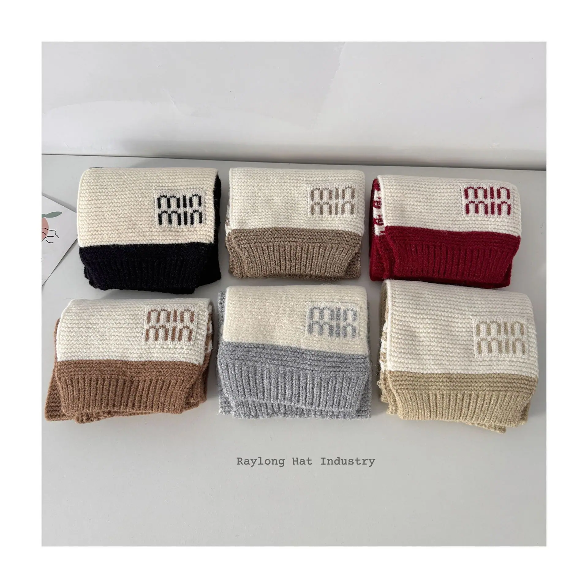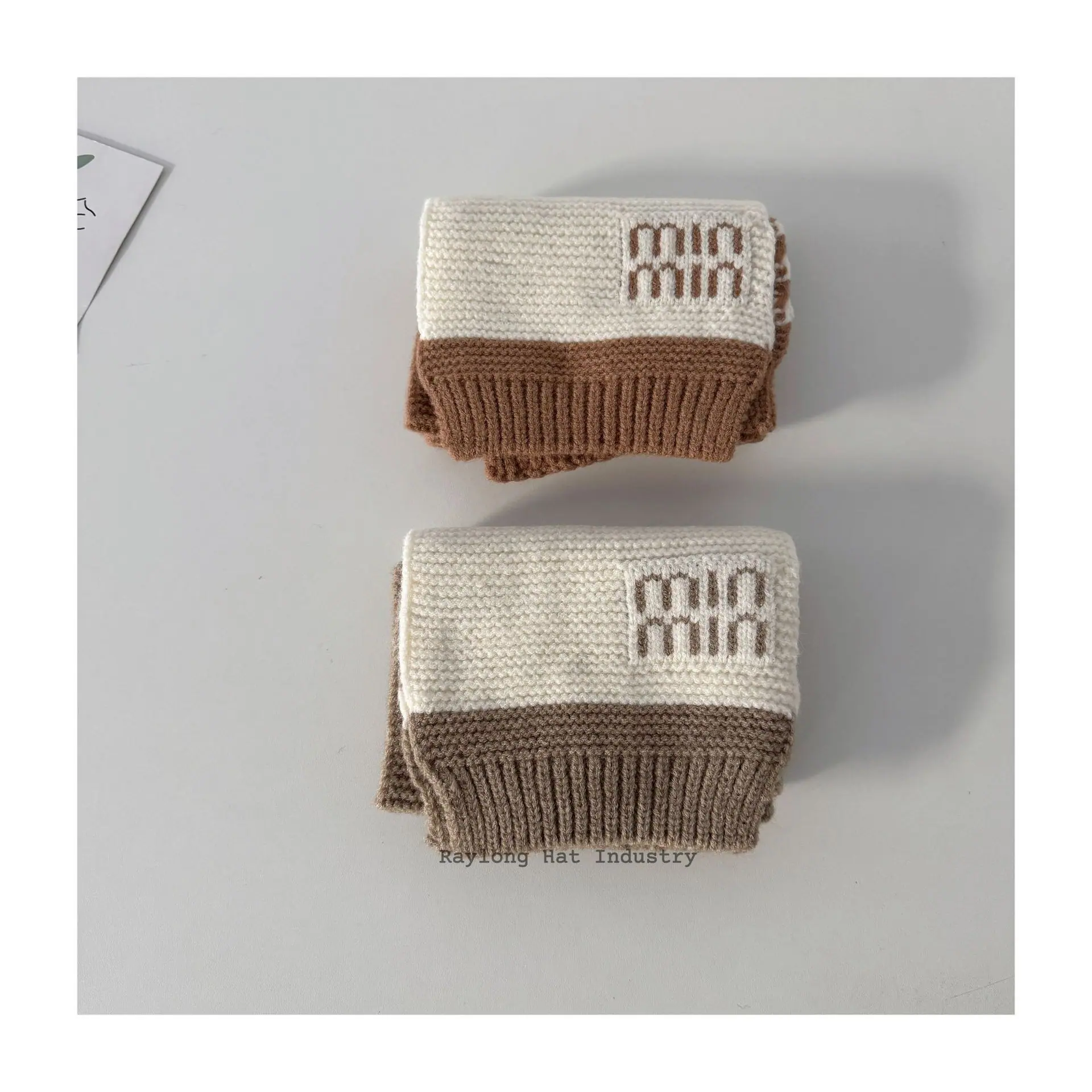 Bufanda de Lana Tejida para Niños Estilo Coreano con Letra Bordada Min Invierno Niños y Niñas Moda Bufanda Cálida