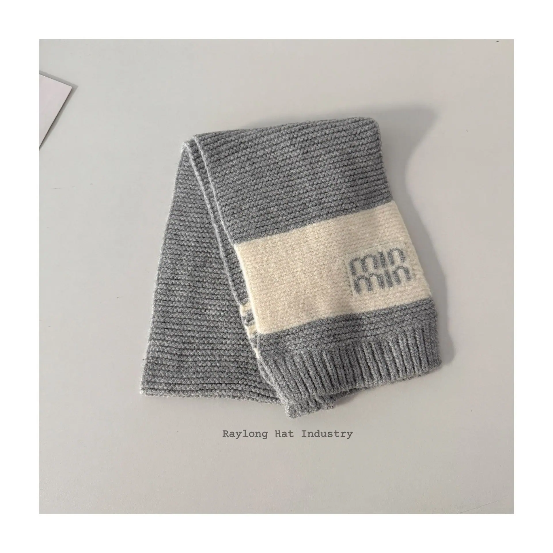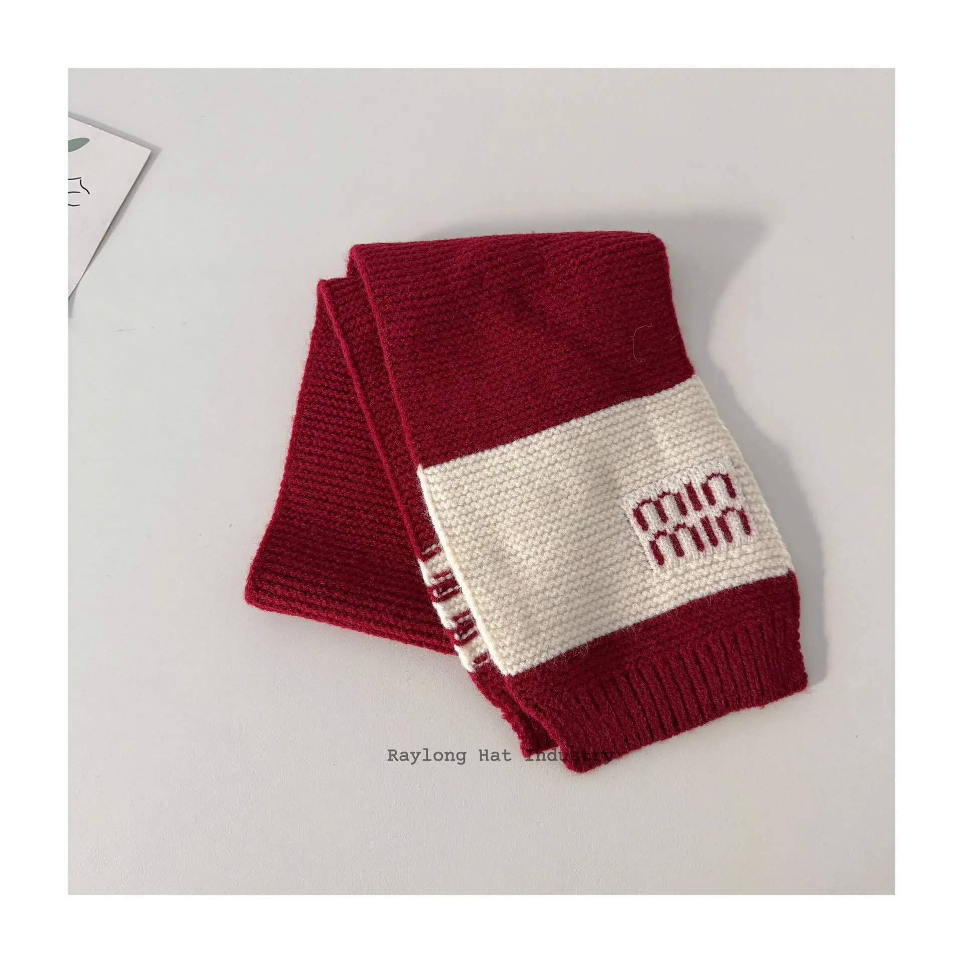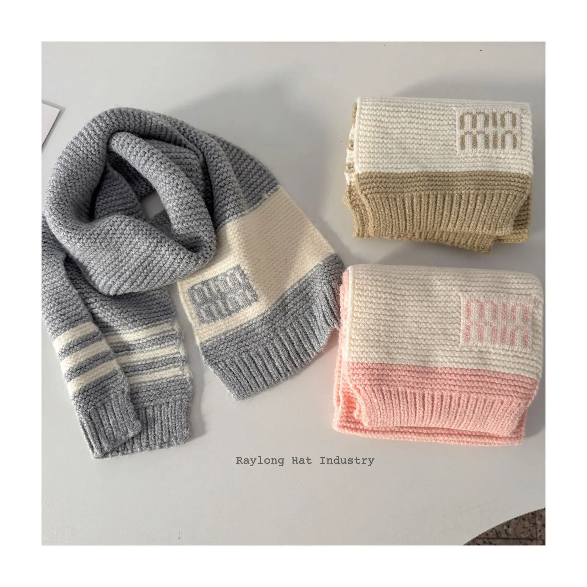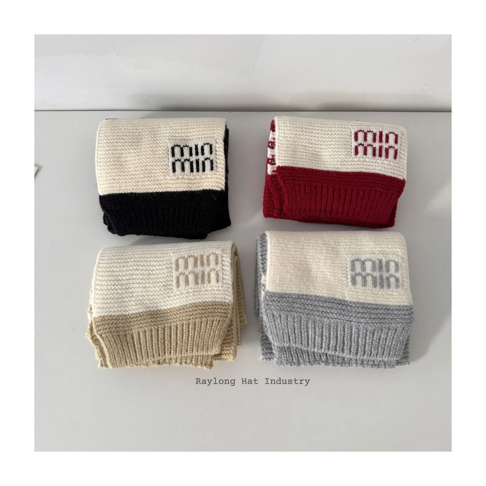 Bufanda de Lana Tejida para Niños Estilo Coreano con Letra Bordada Min Invierno Niños y Niñas Moda Bufanda Cálida