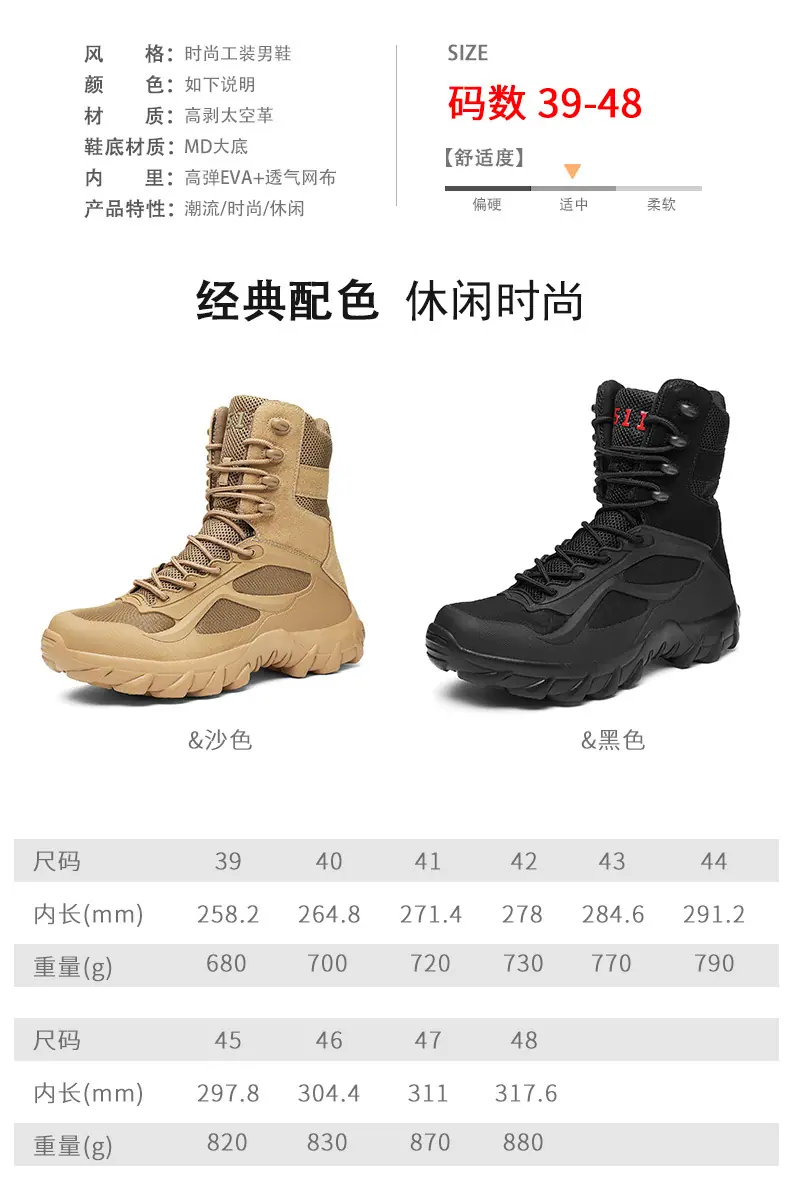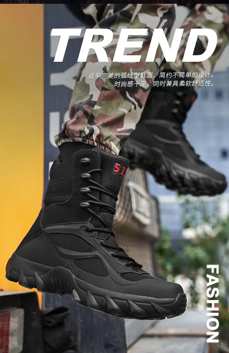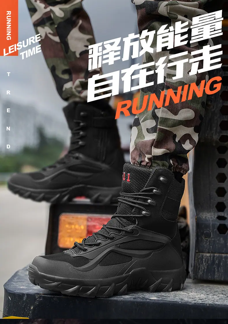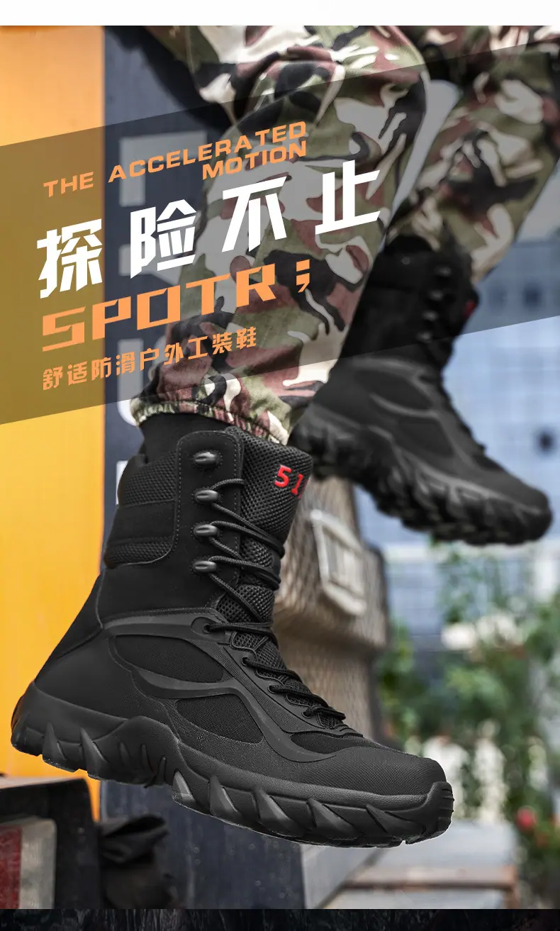 2025 Talla Grande Transfronteriza Zapatos de Senderismo para Hombre de Caña Alta para Exteriores Botas de Combate Tácticas Ropa de Trabajo para el Desierto Envío Directo