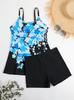 Amazon Nuevo Europeo y Americano Transfronterizo Falda Corta Bikini con Abertura Adelgazante Halter Hermoso Estampado en la Espalda Talla Grande Traje de Baño de Comercio Exterior