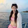 Bikini rosa estilo puro y sexy para chica a cuadros estilo ins sexy para vacaciones conjunto de tres piezas traje de baño estilo falda dividida para mujer