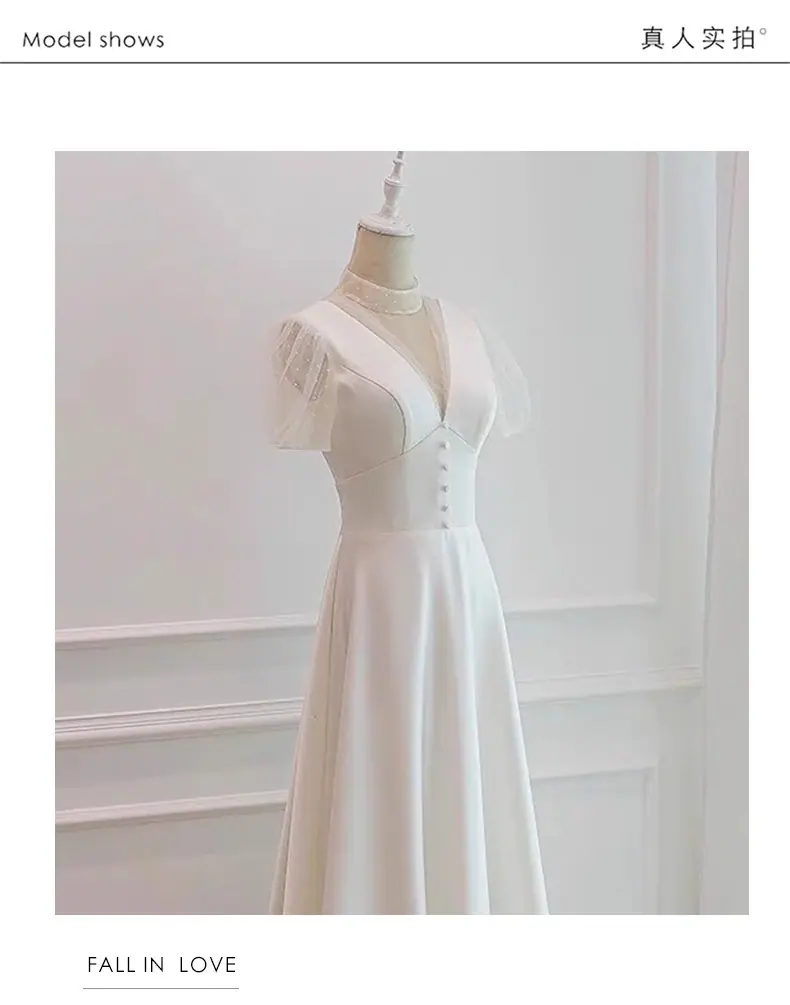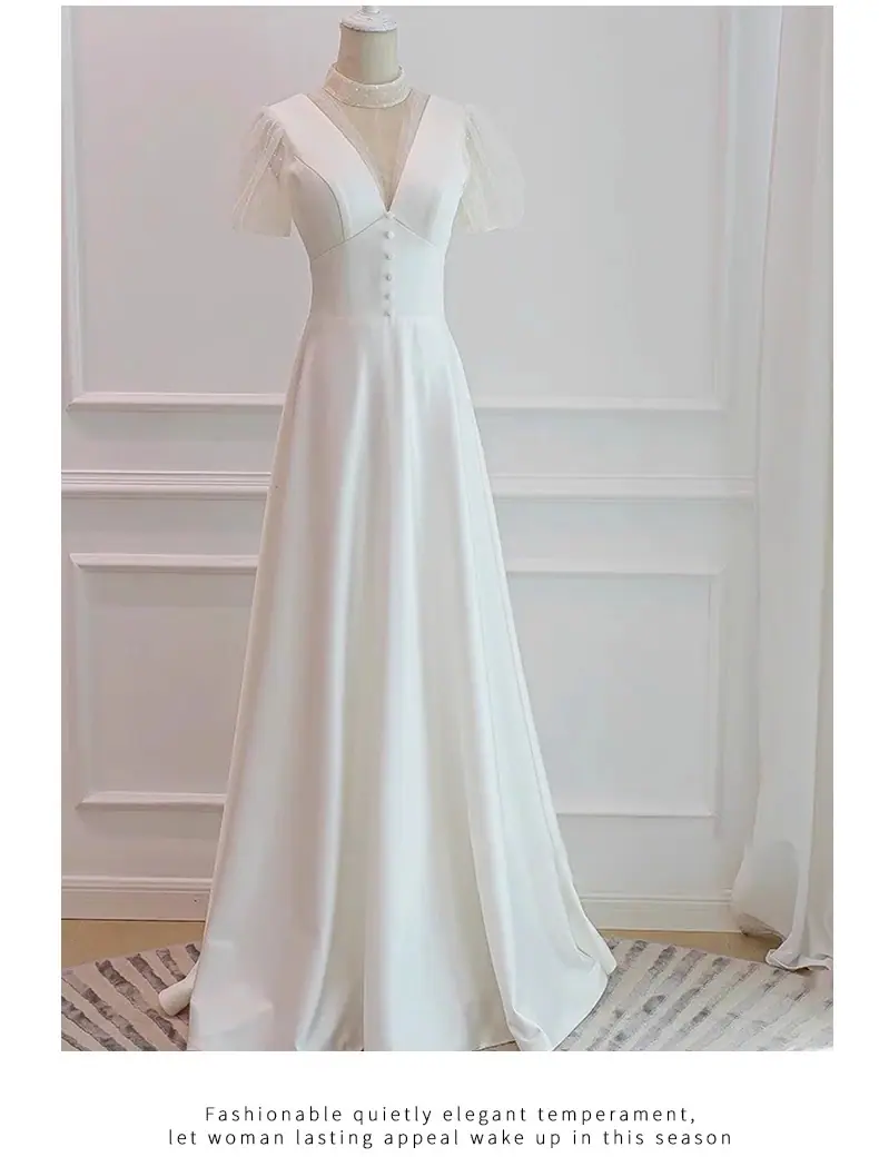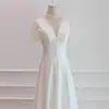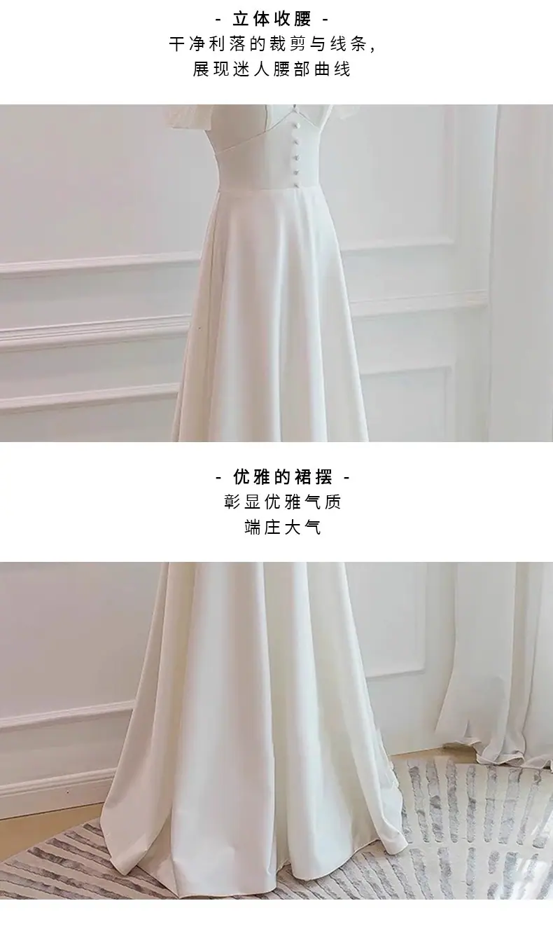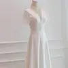 Vestido de Novia Satinado Ligero para Viaje Francés Simple Elegante Vestido de Noche para Compromiso de Boda Novia Vestido Blanco de Alto Nivel