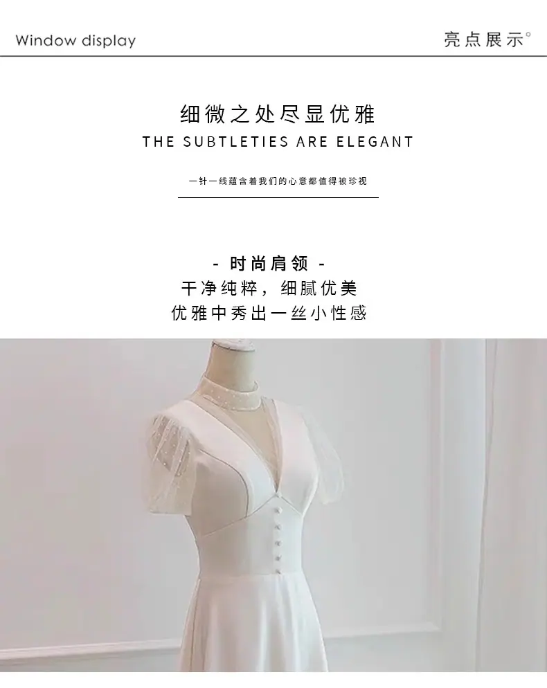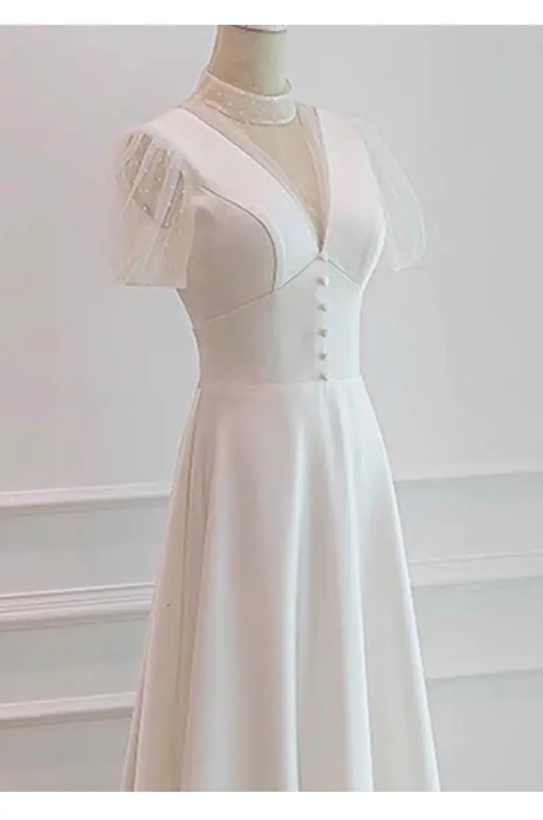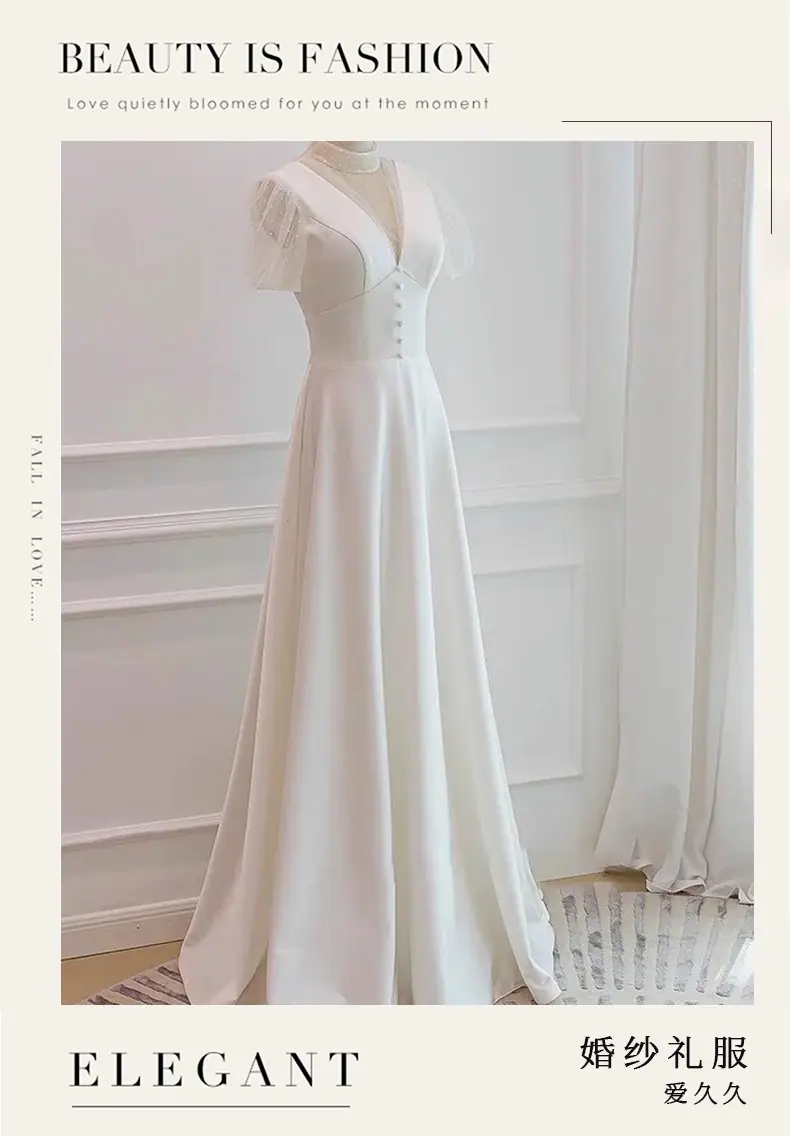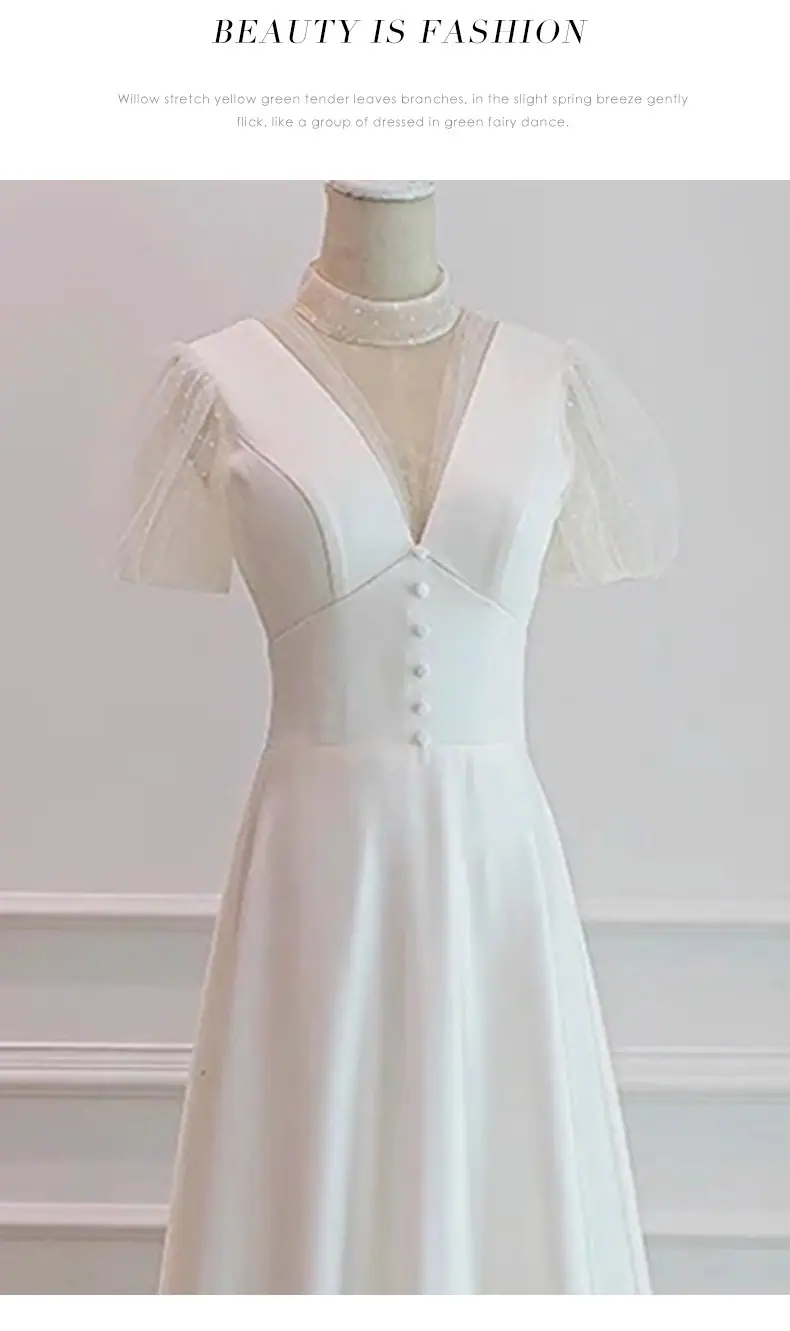 Vestido de Novia Satinado Ligero para Viaje Francés Simple Elegante Vestido de Noche para Compromiso de Boda Novia Vestido Blanco de Alto Nivel