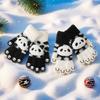 Lindos Guantes de Punto de Peluche de Cinco Dedos de Panda Rojo para Mujer en Invierno Pantalla Táctil Ciclismo Engrosados Cálidos y a Prueba de Frío