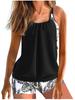 [Tankini de suéter europeo y americano] traje de talla grande conservador adelgazante para mujer con shorts estampados digitalmente divididos