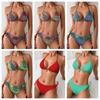Nuevo Bikini Sexy 2025 con Estampado y Cordones Traje de Baño de Playa con Cuello Halter Espalda Descubierta Bikini Dividido para Mujeres