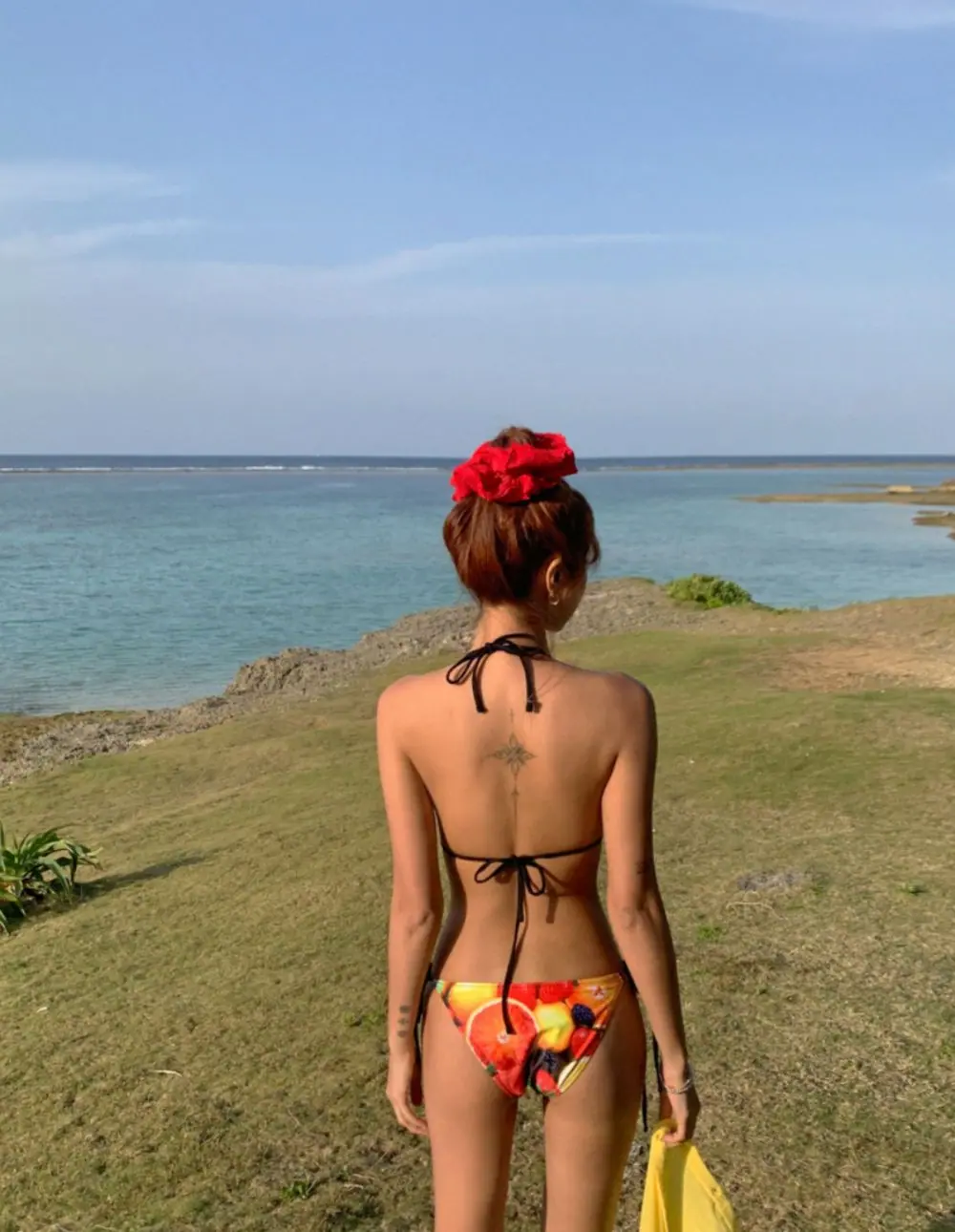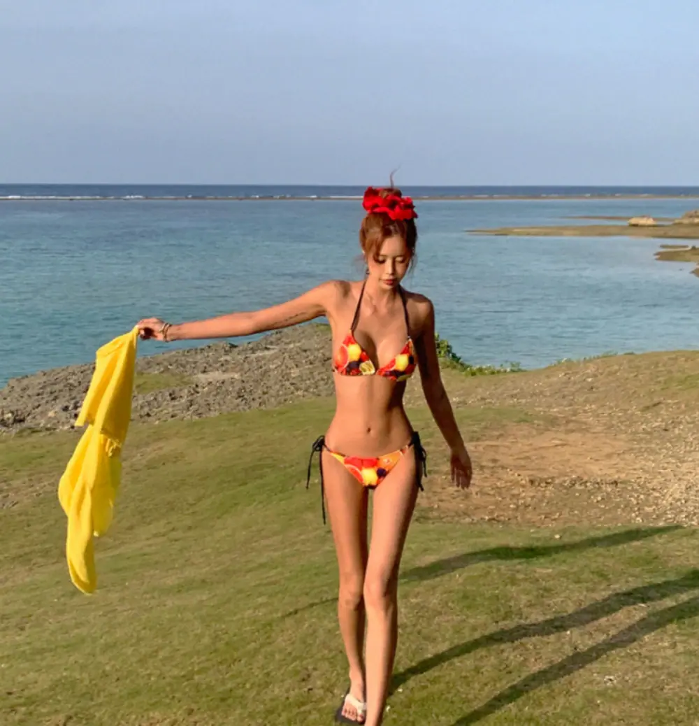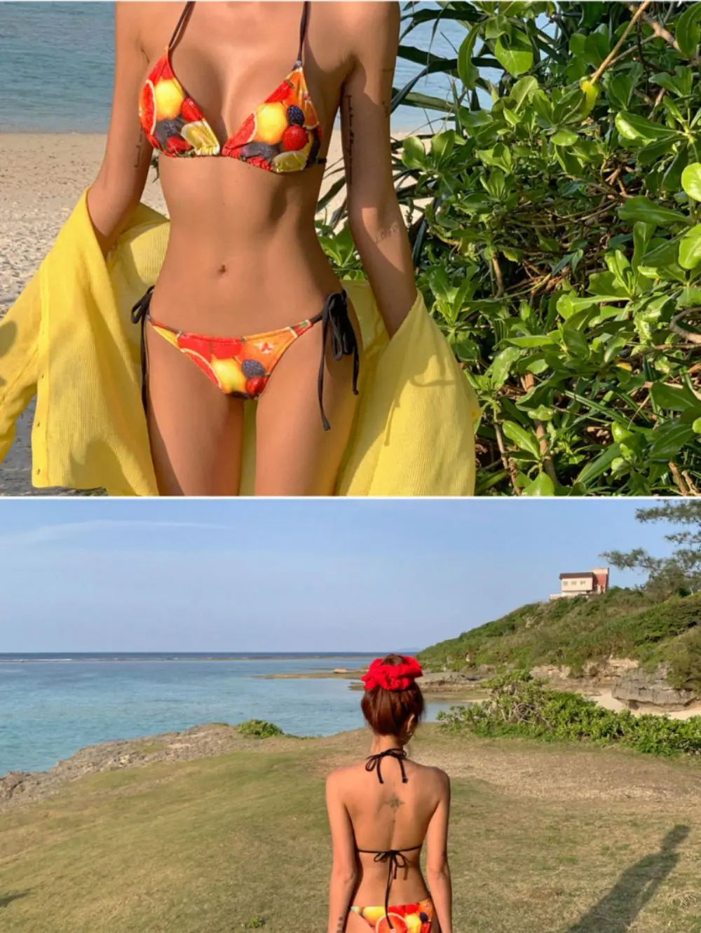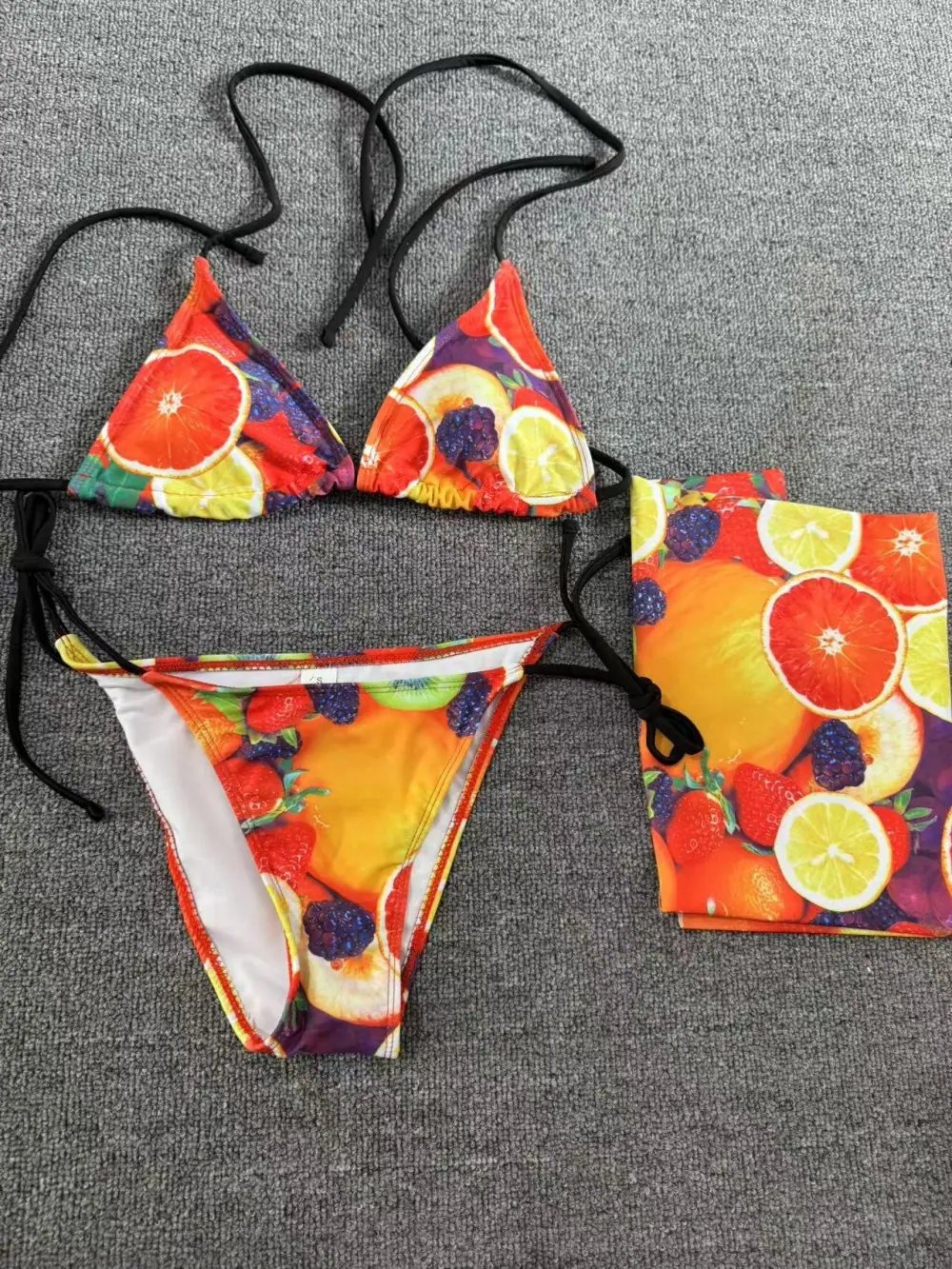 Nuevo Traje de Baño Bikini Dividido Bikini de Tres Piezas Estampado de Frutas Vacaciones en la Playa Aguas Termales Sexy Traje de Baño Mujer