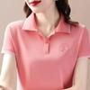 Camiseta de Algodón de Manga Corta para Mujer Verano Solapa Mediana Edad Madre Moda Casual Top Camisa Polo Cuello Deportes Media Manga