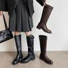 Bota de Moda Versátil con Hebilla de Cinturón de Cuero Vacuno Completo Otoño e Invierno 2025 Tacón Grueso Tacón Medio Punta Redonda Cuero Genuino Botas Altas para Mujer
