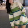 Suéter de Punto Pulóver con Rayas y Bloques de Color, Cuello Redondo, Estilo Holgado y Perezoso, Marca Retro de Moda, Otoño e Invierno 2026 para Mujer