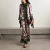 Estación Independiente Transfronteriza Nuevo Traje de Dos Piezas Casual Suelto Retro Estampado de Satén Pantalones de Pierna Ancha Europeo y Americano