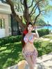 Nuevo Estilo Lujuria Pura Pequeña Cereza Sexy y Dulce Bikini de Falda Dividida Traje de Baño de Tres Piezas Vacaciones Verano Junto al Mar