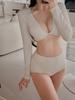 Traje de Baño Bikini Sexy Popular de Vacaciones de 3 Colores Texturizado con Cuello en V de Manga Larga con Abertura de Cintura Alta