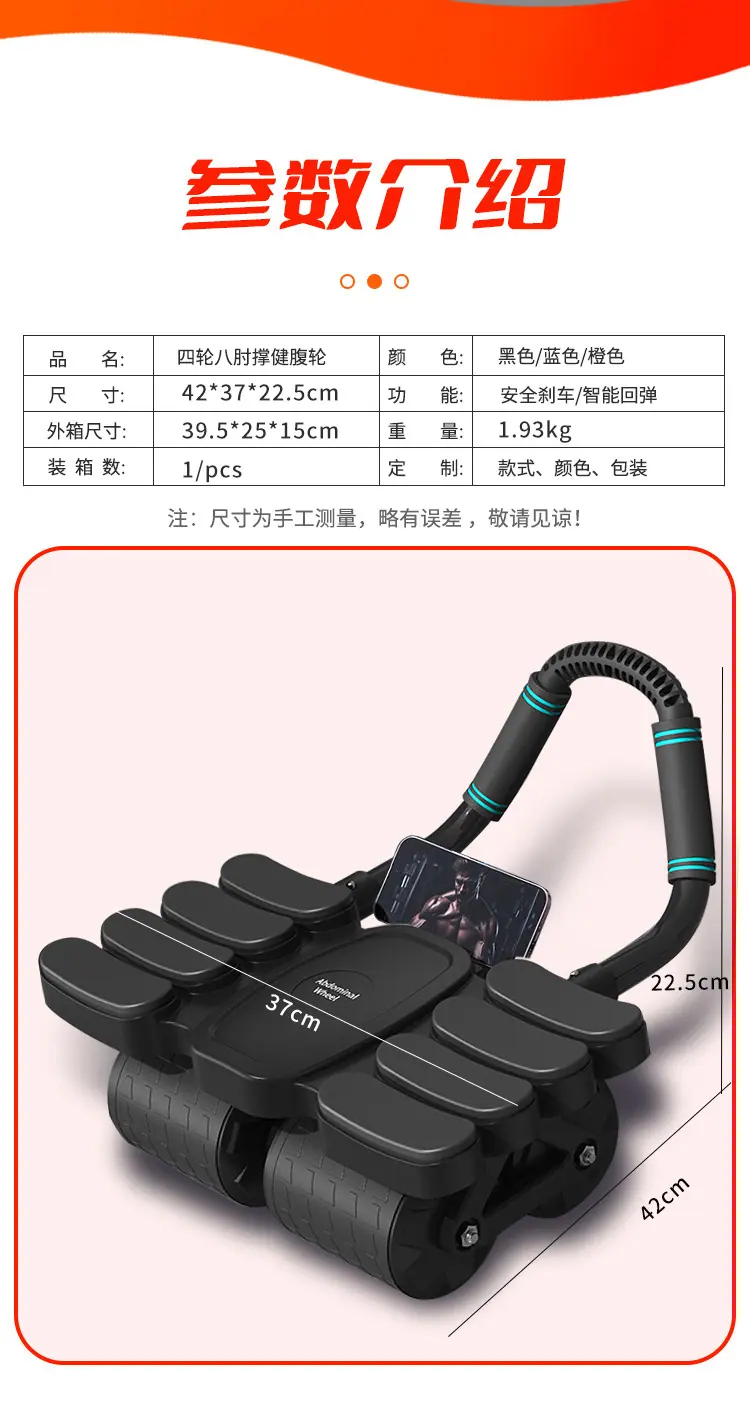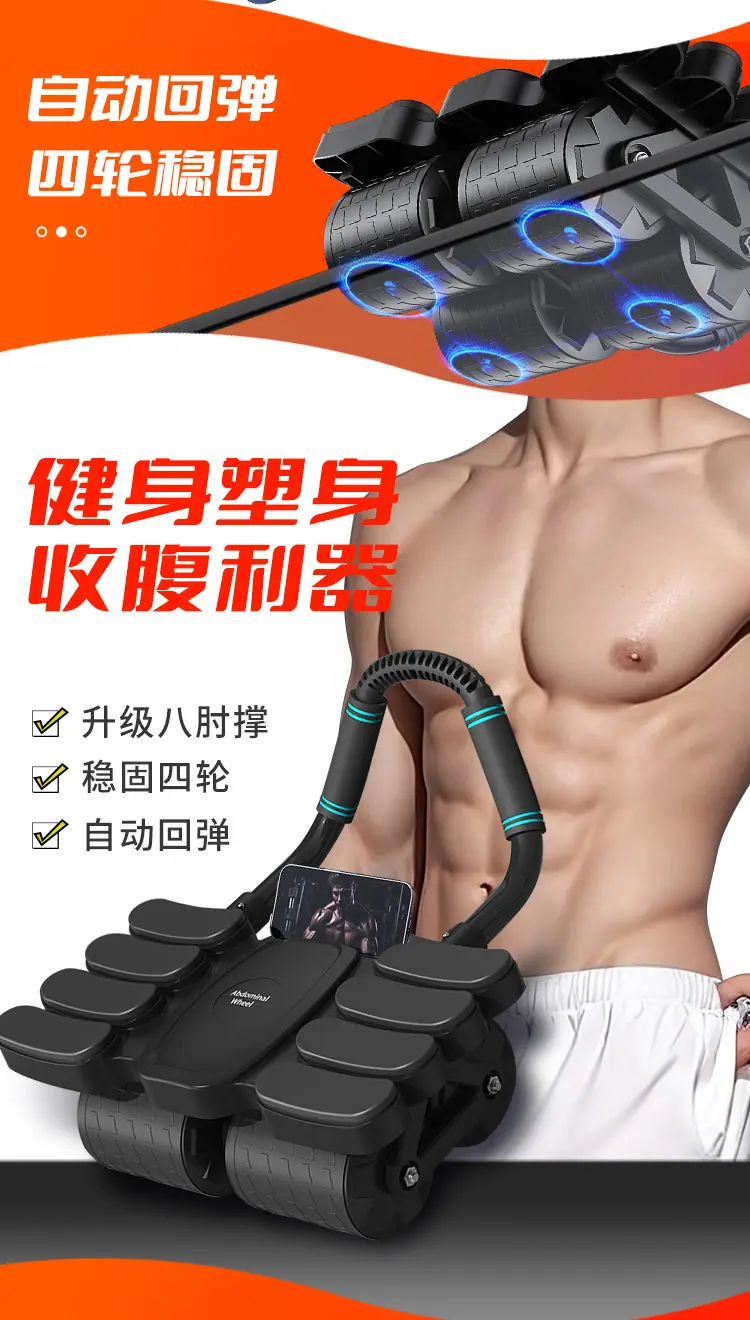 2025 Nueva Rueda Abdominal Rebote Automático Entrenamiento Herramienta de Entrenamiento de Músculos Abdominales Rueda Abdominal de Cuatro Ruedas Equipo Deportivo y de Fitness