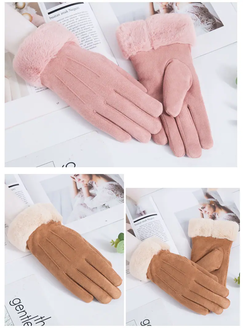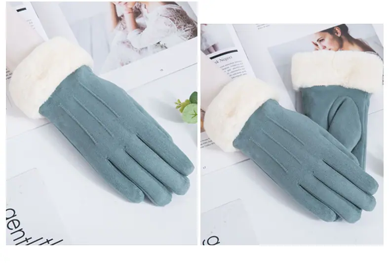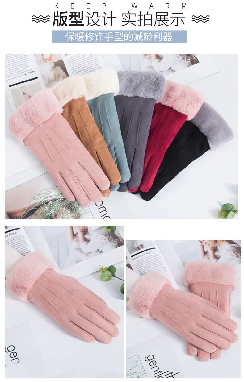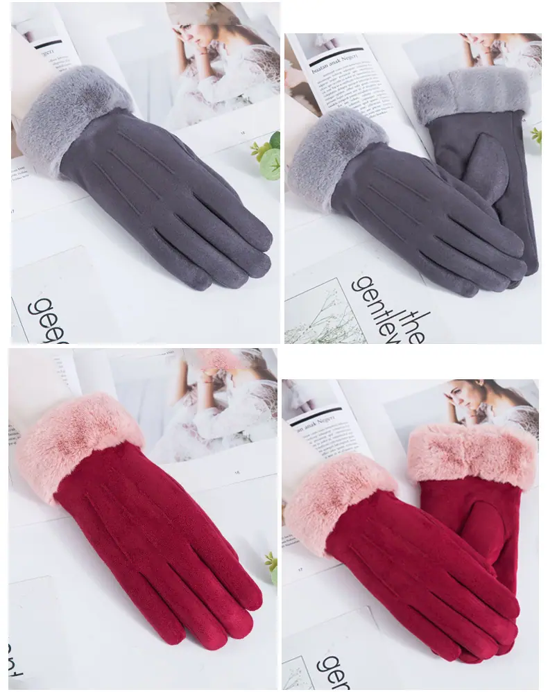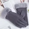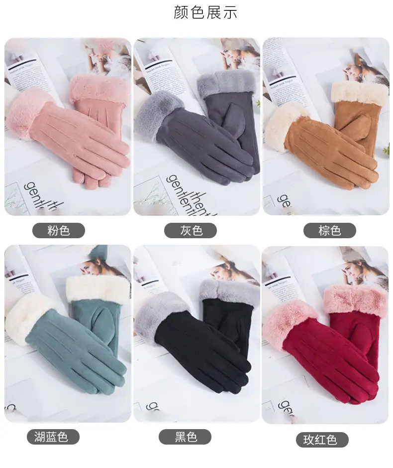Guantes de Invierno Mujer Gamuza Cálidos Forro Polar Engrosados Pantalla Táctil A Prueba de Viento A Prueba de Frío Impermeables Lindo Estilo Coreano Ciclismo Bicicleta Eléctrica