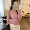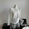 Invierno Regular Hombro Manga Larga Forro Polar Cálido Capa Interior Camiseta Ajustada Top Blanco Cepillado Capa Base para Mujer Atuendo Principios de Primavera
