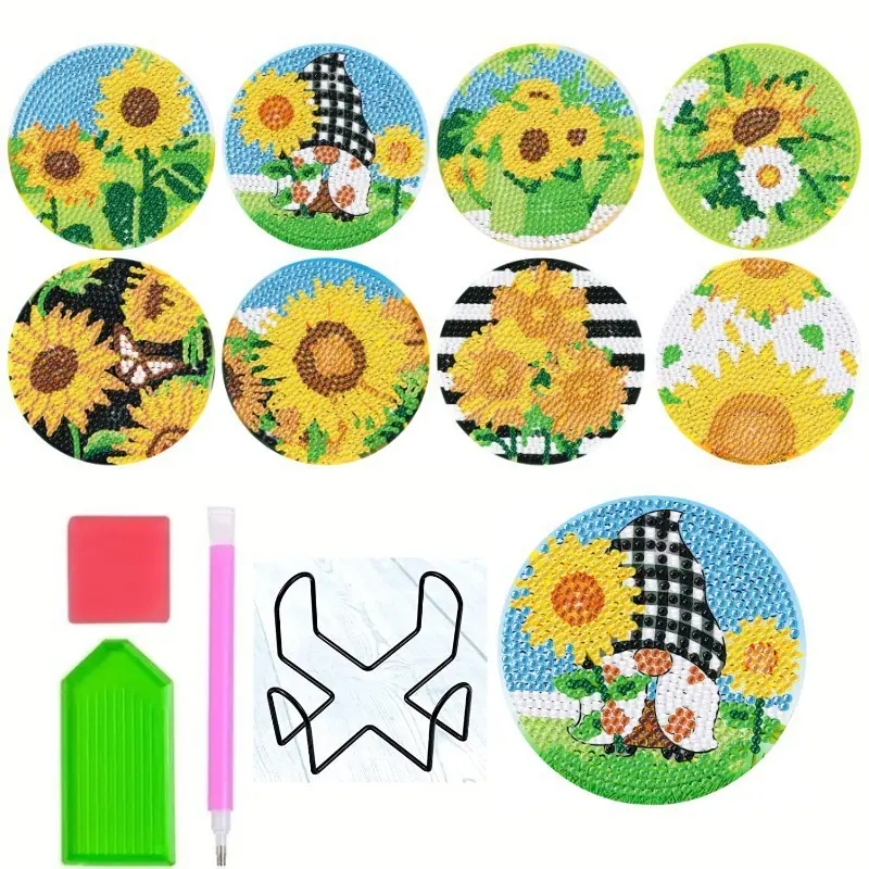 5D5D Nuevo posavasos de pintura de diamantes redondo acrílico corcho individual Girasol Pintura de diamantes bricolaje taladro manual