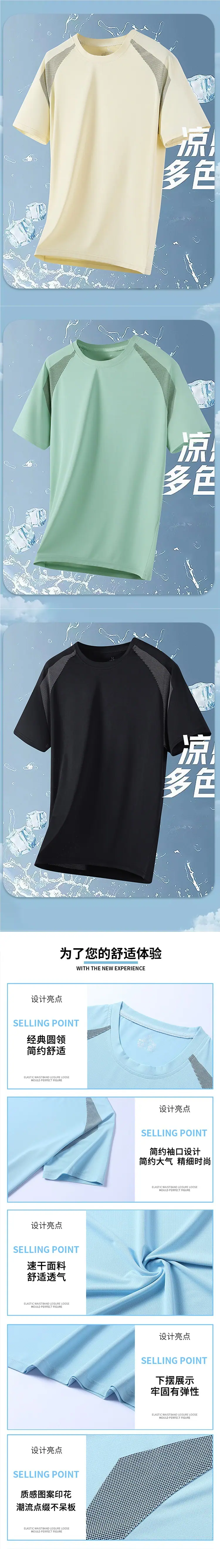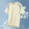 Logotipo Personalizado Verano Nuevo Camiseta de Manga Corta de Secado Rápido para Hombre Verano Seda de Hielo Transpirable Fresca Top Blanco Albaricoque
