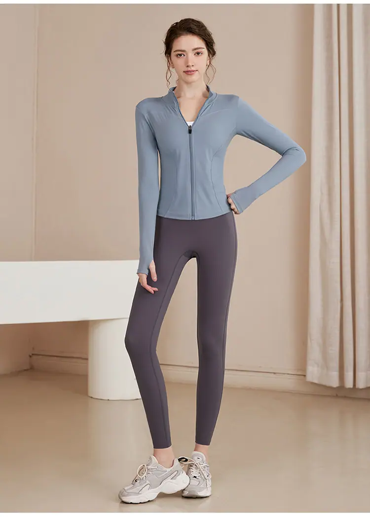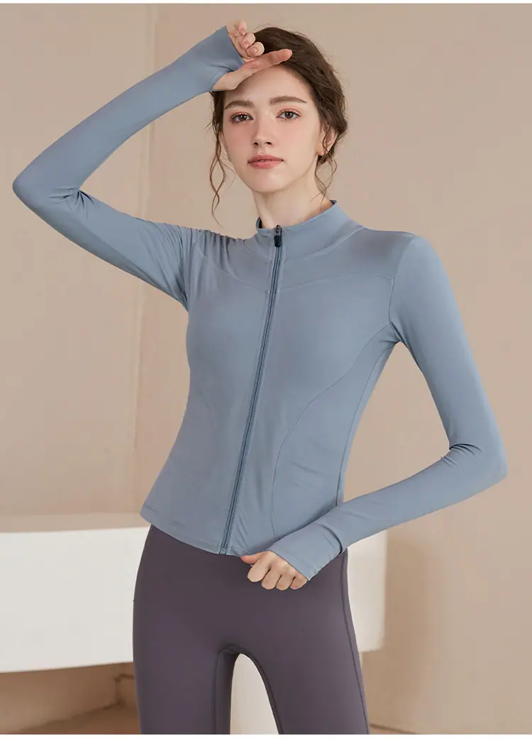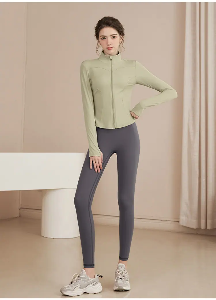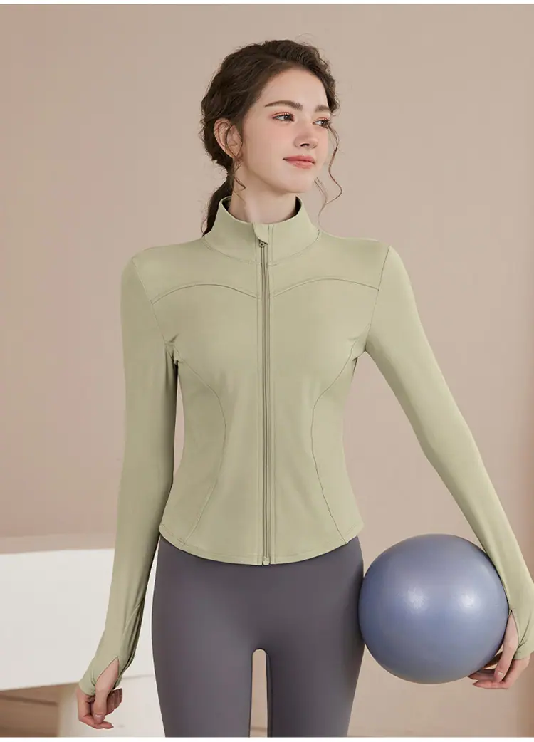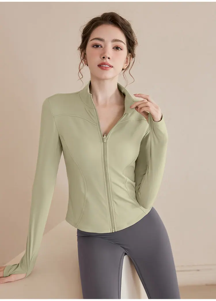 Chaqueta Deportiva de Entrenamiento con Forro Polar para Mujer Estilo Otoño e Invierno Cierre Cremallera Ropa para Correr y Fitness Manga Larga Cuello Alto Corte Ajustado Cárdigan Ropa de Yoga