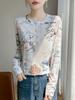 Punto de Punto Fino de Otoño Temprano 2025 Transfronterizo de Cuello Redondo de Manga Larga Femenino Estampado Suelto Jersey Camiseta Básica