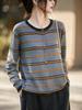 Nuevo Cárdigan de Punto con Cuello Redondo de Lana Fina a Rayas Bloque de Color Suelto para Mujer Otoño e Invierno 2025 Transfronterizo