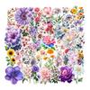 Paquete de 50 Hojas Stickers Florales Lavado de Tinta INS PET Transparente Impermeable Decoración Material Floral para Diario Guitarra Cuaderno